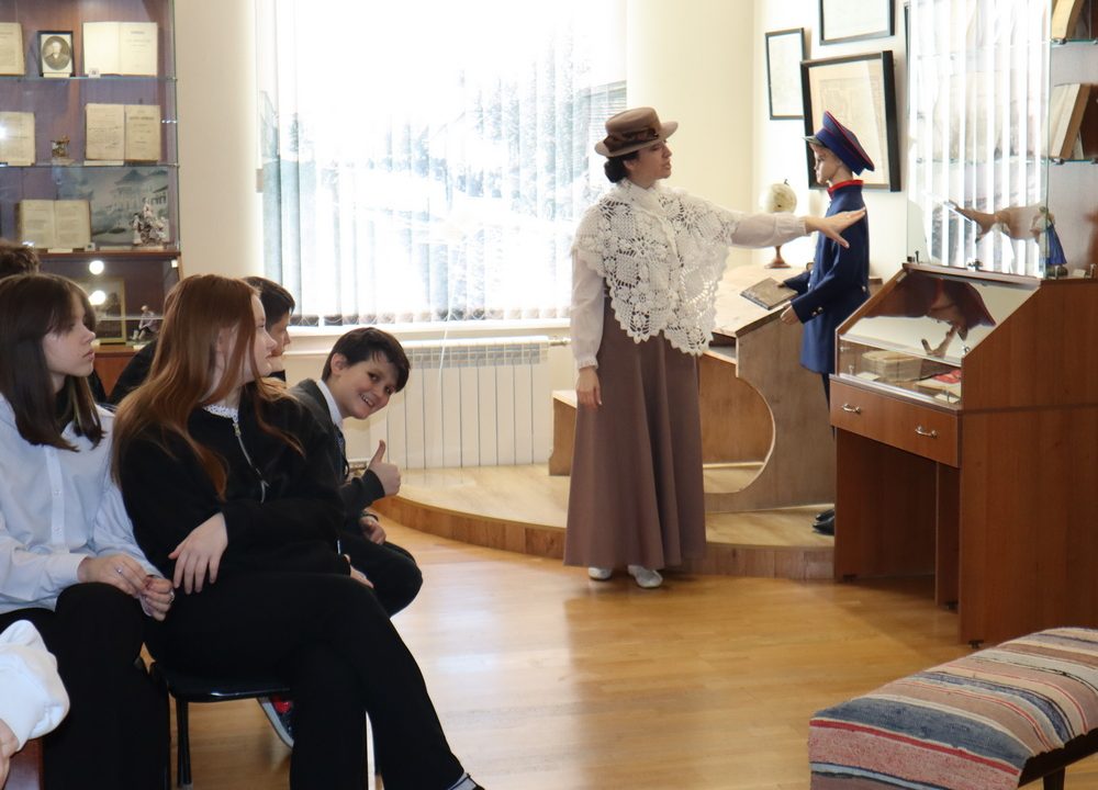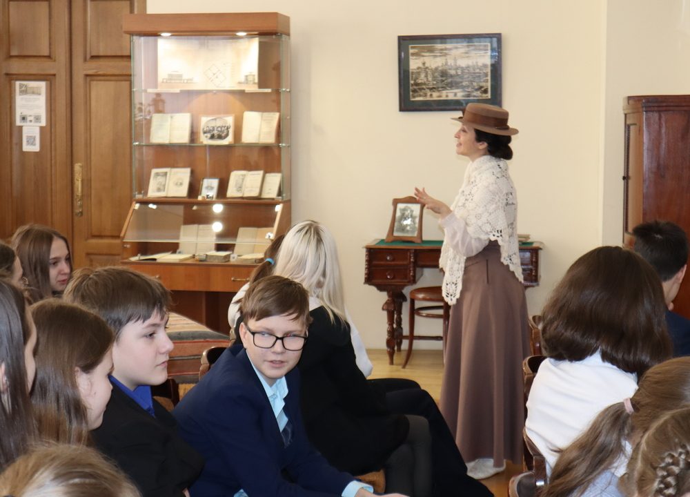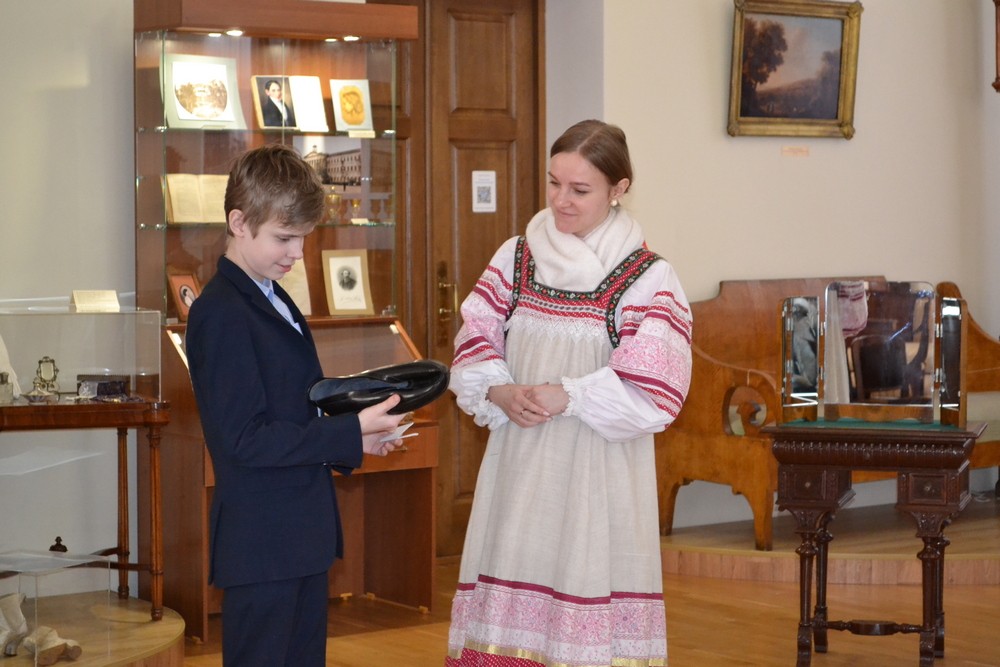 «Матушка» выдающегося ученого рассказала ребятам о его детских годах и своей роли в воспитании «идеального профессора». Федор Буслаев рос разносторонним ребенком: выучился играть на гитаре, танцевать, но, конечно, главным и любимым занятием оставалось чтение вслух. В 10 лет он поступил в мужскую гимназию, которая раньше располагалась в здании Литературного музея. Школьники узнали о распорядке дня в гимназии и об изучении таких наук, как латынь, логика, риторика, ботаника и минералогия.