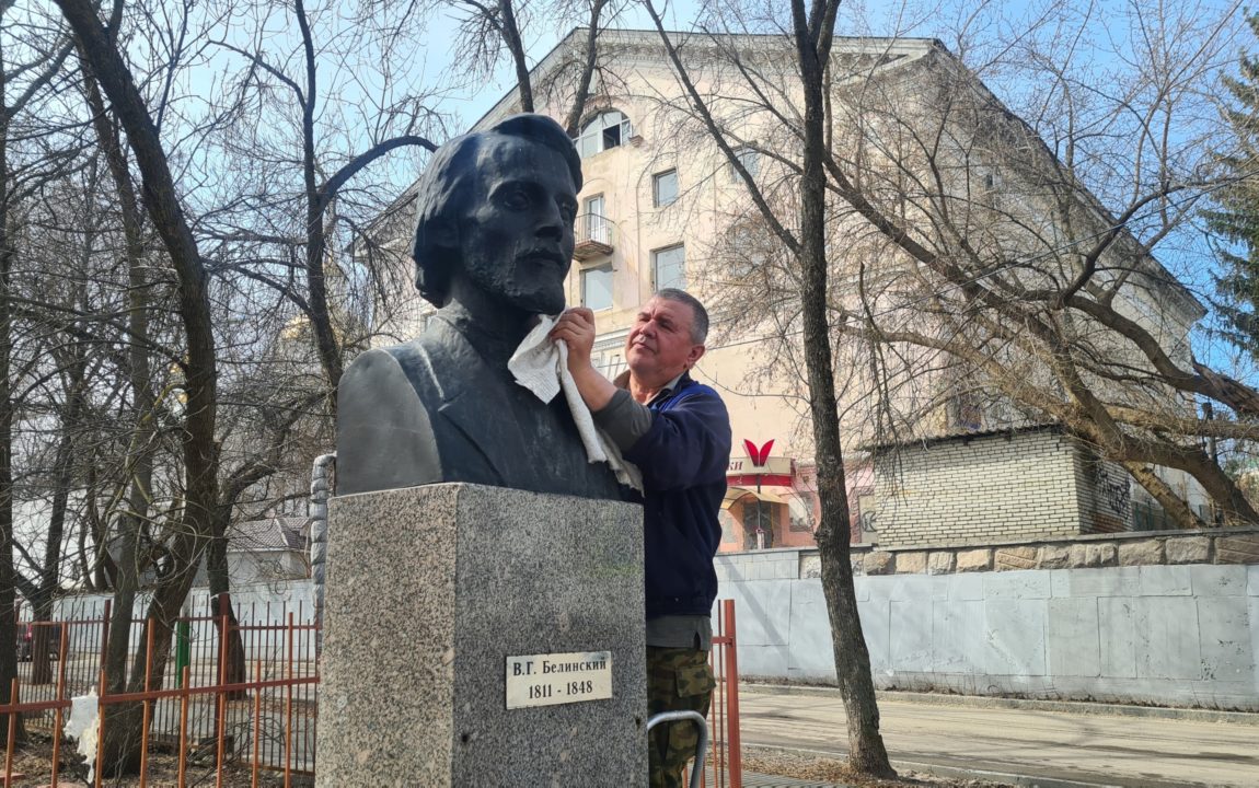 С 21 марта по 30 апреля 2022 года в Пензенской области проходит месячник по благоустройству и санитарной очистке. В учреждениях Объединения государственных литературно-мемориальных музеев еженедельно проводятся мероприятия по уборке подведомственных территорий. Сотрудники избавляются от снега, сухой листвы, веток и мусора, скопившегося в осенне-зимний период. Также Музей А.И. Куприна по традиции позаботился о территории около бюста писателя, расположенной вблизи учреждения, а Пензенский литературный музей — о площадке с бюстом В.Г. Белинского. Скульптура, постамент и площадка были отмыты от внушительного слоя пыли. Плиточное покрытие удалось освежить с помощью городской уборочной машины. Месячник по благоустройству завершится общегородским субботником, намеченным на 30 апреля. Музейные сотрудники также примут в нем активное участие.