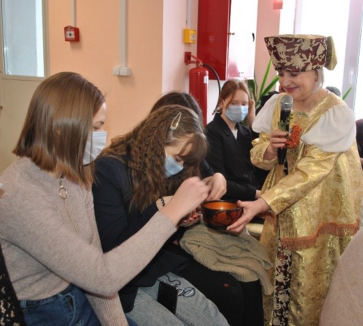 В ходе мероприятия специалист по экспозиционной и выставочной деятельности музея А.Н. Радищева Немова О.Б. рассказала о сохранении традиций предков, об обрядах и преданиях, а так же поделилась методикой проведения фольклорного праздника «Рябинник», который проходит в музее Радищева. Гости смогли увидеть небольшой отрывок праздника и поучаствовать в гадании на рябиновых ягодах.