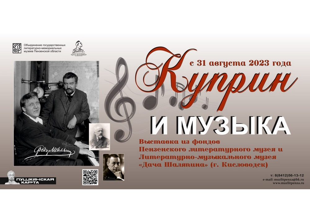 31 августа в 15:00 в рамках 39-го Купринского литературного праздника в Пензенском литературном музее отроется выставка «Куприн и музыка». Это совместный выставочный проект Объединения государственных литературно-мемориальных музеев Пензенской области и Литературно-музыкального музея «Дача Шаляпина» (г. Кисловодск).