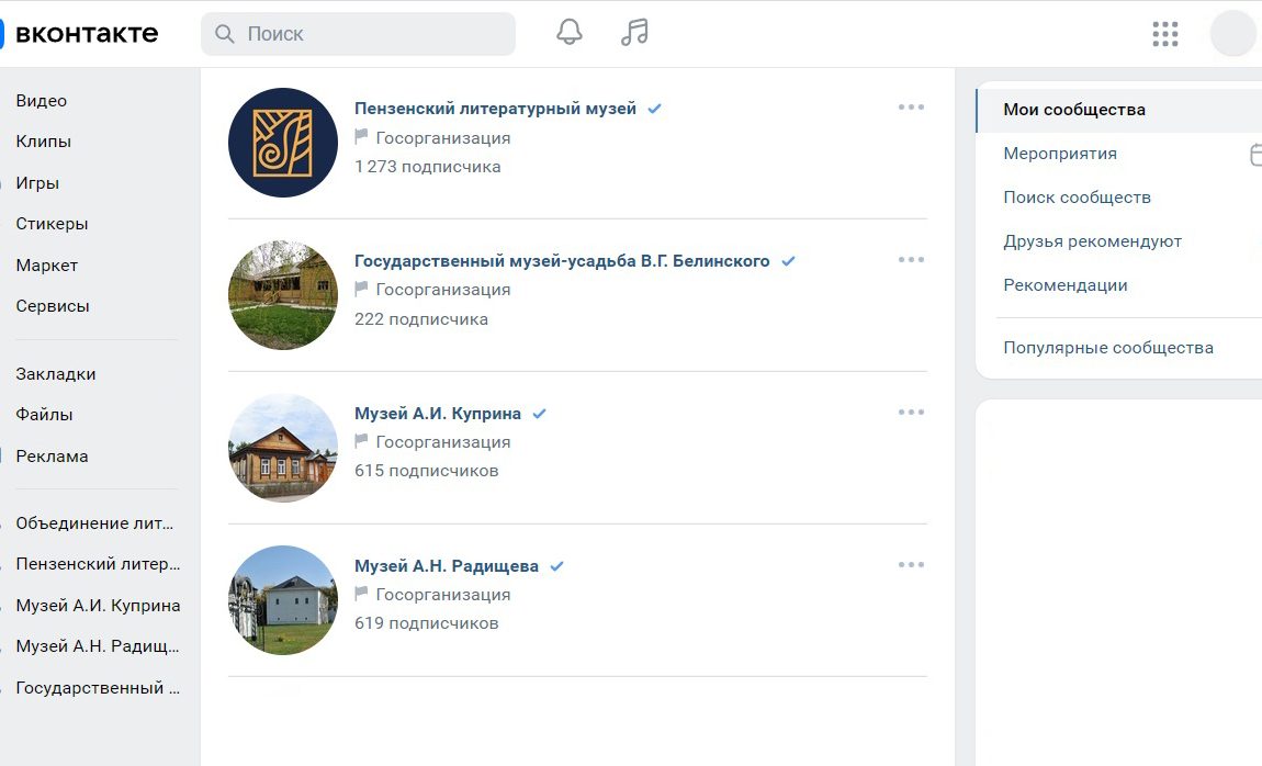 Среди пензенских учреждений культуры музеи литературного Объединения стали первыми, получившими специальную отметку. С 3 октября рядом с названием сообществ Пензенский литературный музей, Музей А.И. Куприна, Музей А.Н. Радищева, Государственный музей-усадьба В.Г. Белинского установлена запись «Госорганизация».