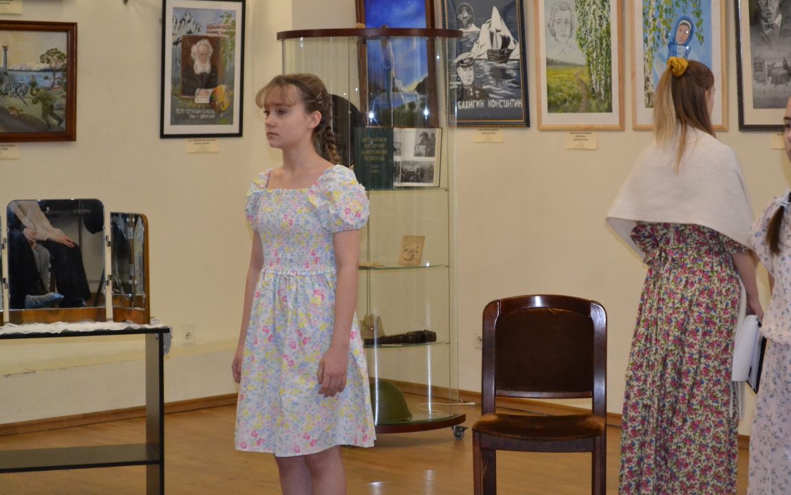Вечер «900 дней мужества», посвященный 80-ой годовщине снятия блокады Ленинграда состоялся в Литературном салоне музея. По сюжету, Света и Катя (в исполнении Анастасии Щемлевой и Виктории Коваленко), находясь в советской квартире довоенного Ленинграда, рассуждают о счастливом и светлом будущем. Света желает стать хирургом, как Николай Бурденко, а Катя – порхать на сцене, как балерина Ольга Иордан. Мечтам девочек не суждено сбыться – начинается Великая Отечественная Война…