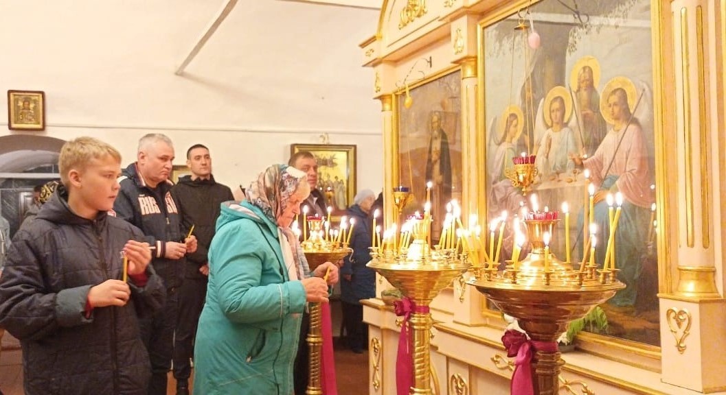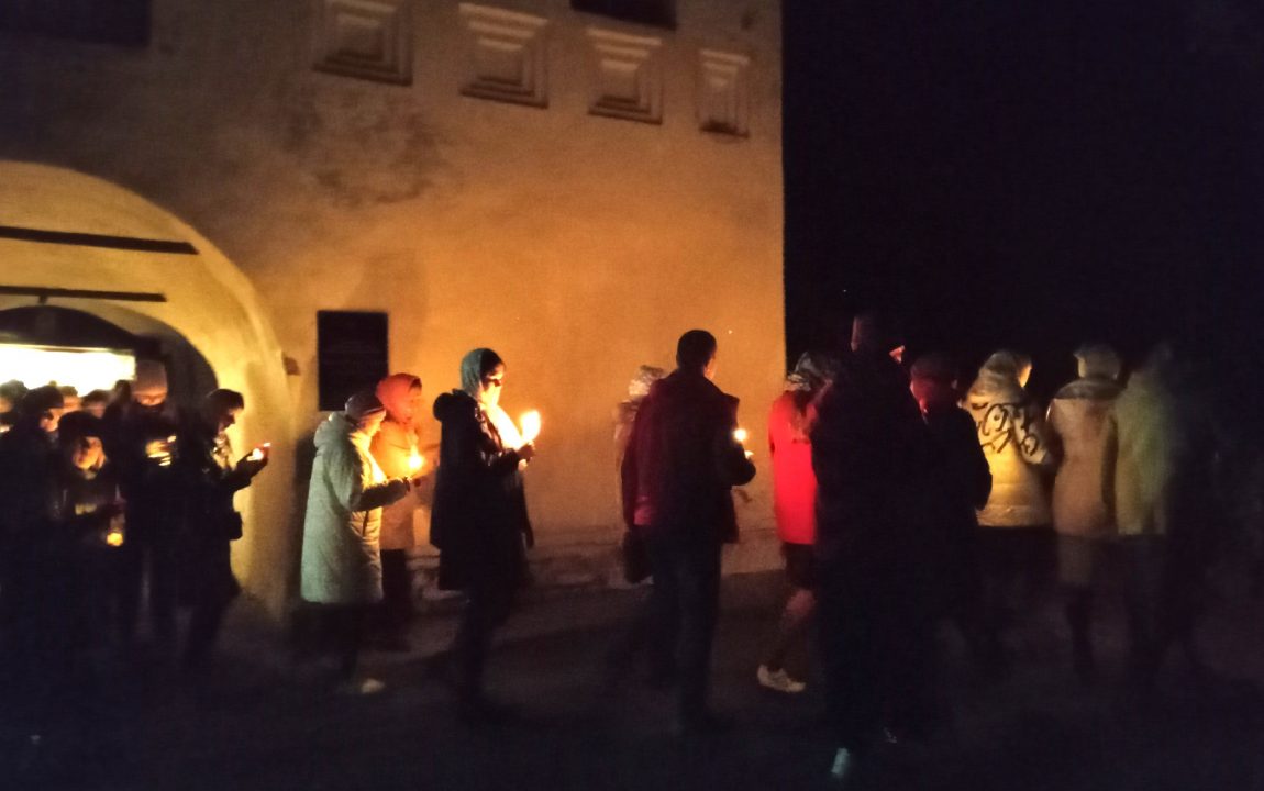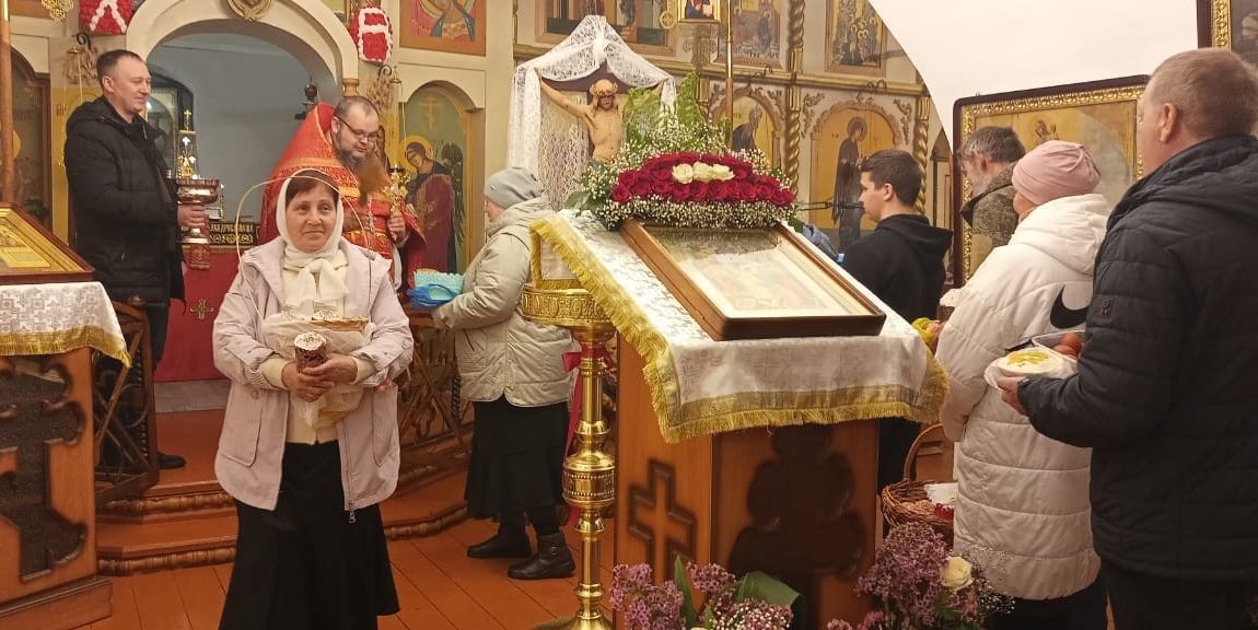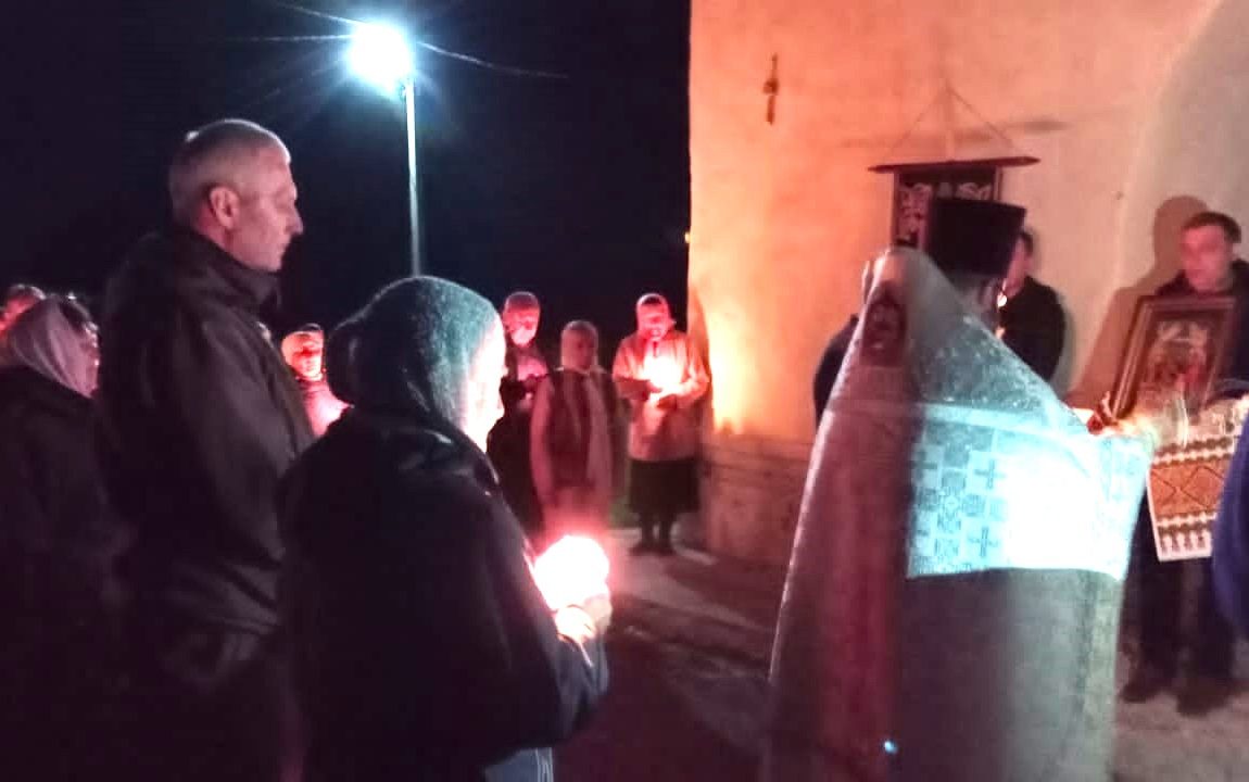Во время богослужения верующие прошли крестным ходом с горящими в руках свечами. Все желающие по традиции освятили яйца и куличи.