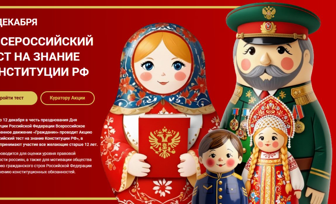 Ежегодно 12 декабря в честь празднования Дня Конституции Российской Федерации Всероссийское Общественное движение «Гражданин» проводит Акцию «Всероссийский тест на знание Конституции РФ». Акция проводится для оценки уровня правовой грамотности россиян, а также для мотивации общества к изучению гражданского строя Российской Федерации и выполнению конституционных обязанностей.