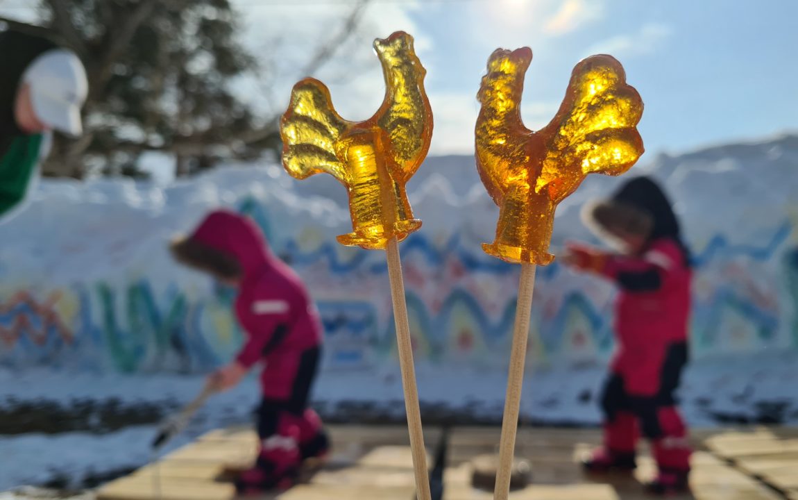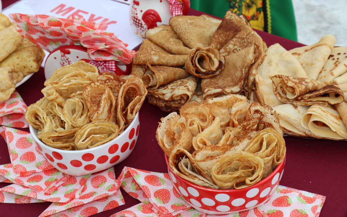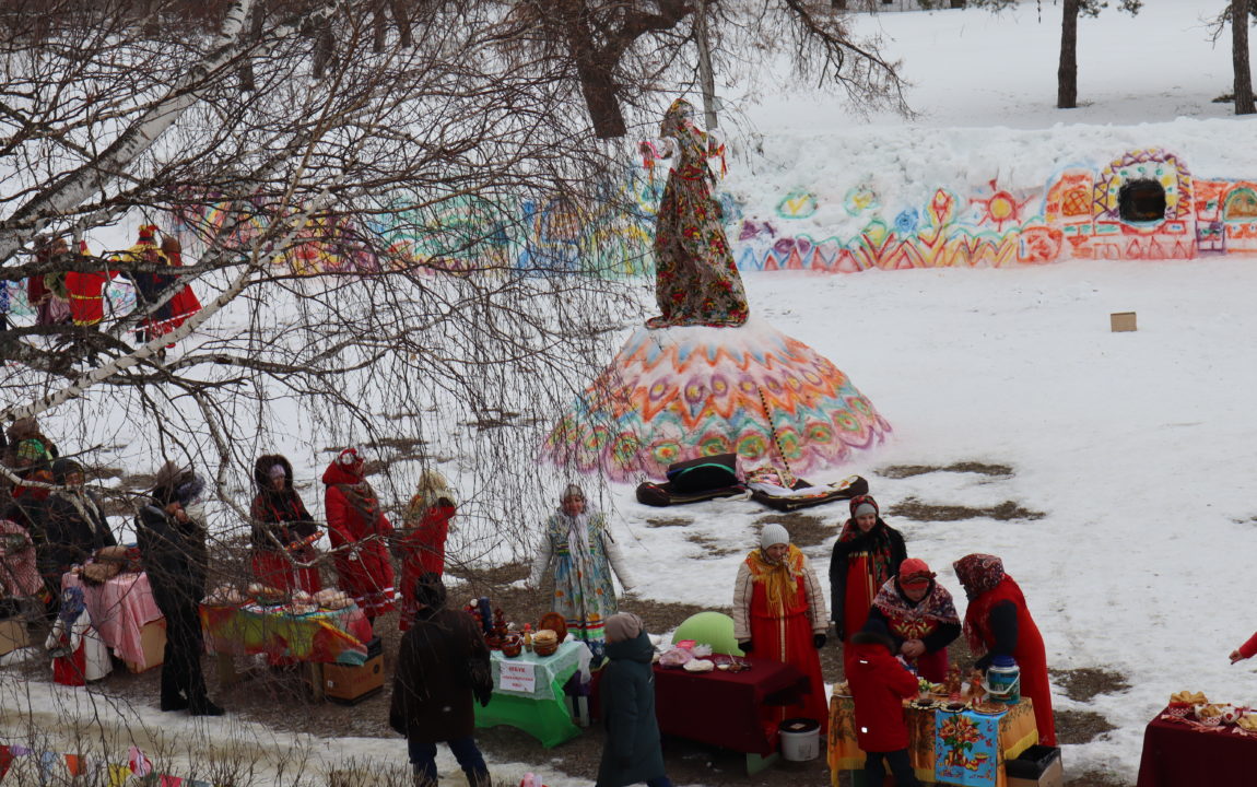 На свежем воздухе гостям были предложены традиционные масленичные забавы («зимняя рыбалка», метание валенка, бег в мешках, перетягивание каната, «жмурки», хороводы, катание с горки), катание на пони, фотозоны в деревенском стиле. Там же, на улице, можно было попробовать традиционное угощение – блины, уху по-аблязовски, согреться горячим чаем.