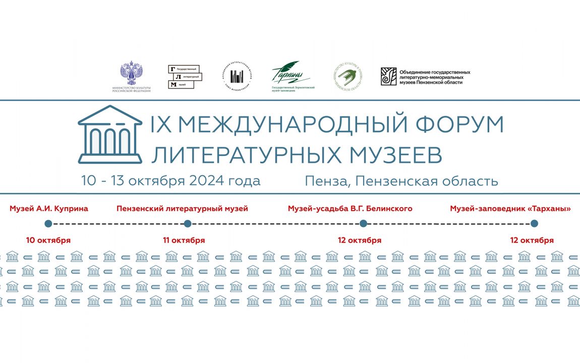 С 10 по 13 октября 2024 года на базе Объединения государственных литературно-мемориальных музеев Пензенской области и Государственного Лермонтовского музея-заповедника «Тарханы» состоится IX Международный форум литературных музеев.
