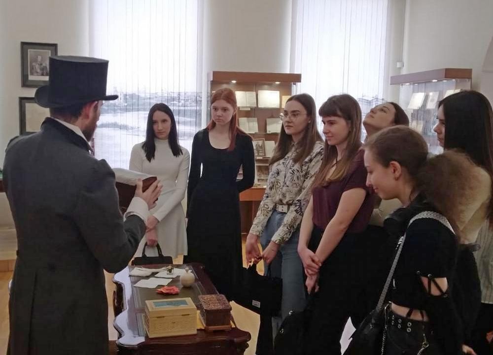 Совсем недавно пензенские студенты побывали на одном из самых популярных мероприятий Литературного музея – театрализованной экскурсии «Литературные сюжеты». И мы вновь распахнули для них музейные двери, чтобы пригласить в «Путешествие с классиками»!
