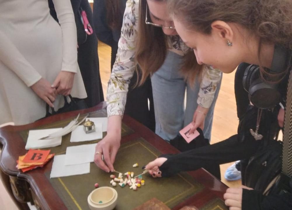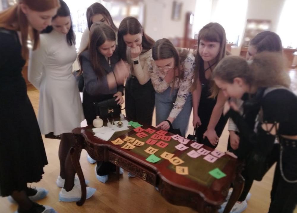 Ребята с удовольствием и интересом прошли все испытания в трех залах – на основной экспозиции «Пензенская земля – русской литературе», в зале «От Блока до блога» и на выставке «Одиссея длиною в жизнь». Студенты ответили на вопросы очаровательных дам и кавалера, разгадали все ребусы, поиграли в салонные игры XIX века и успешно собрали финальную цитату.