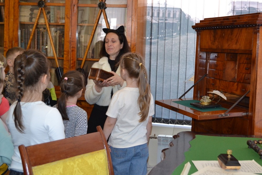«Сказочные персонажи» музея проводили пензенских школьников по стране «Литературии», где дети узнали о том, что располагалось в здании Пензенского литературного музея в XIX веке, чем были интересны литературные салоны и кто их посещал. Детям рассказали о великих писателях и поэтах, книги которых представлены на основной экспозиции. В завершении обзорной экскурсии по основной экспозиции школьники отыскали и прочитали мудрые слова на волшебном свитке из старинного секретера.
