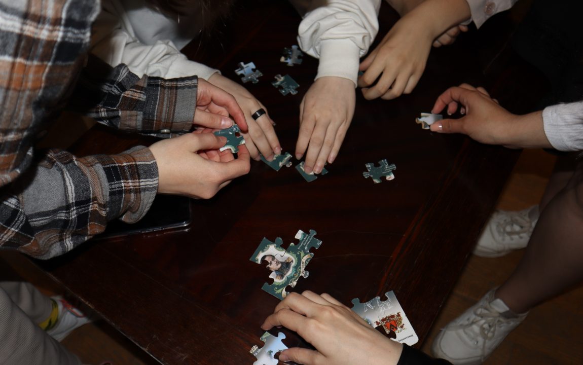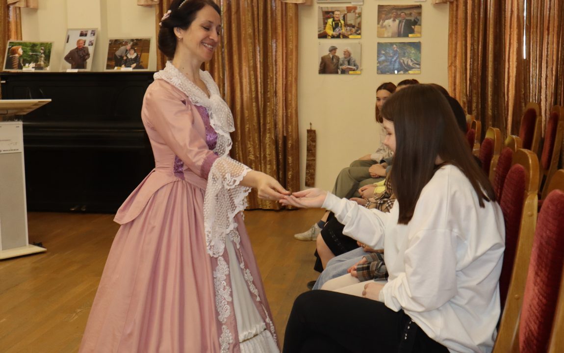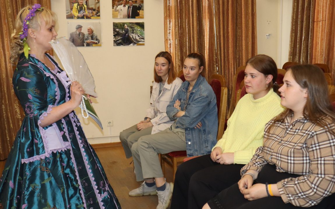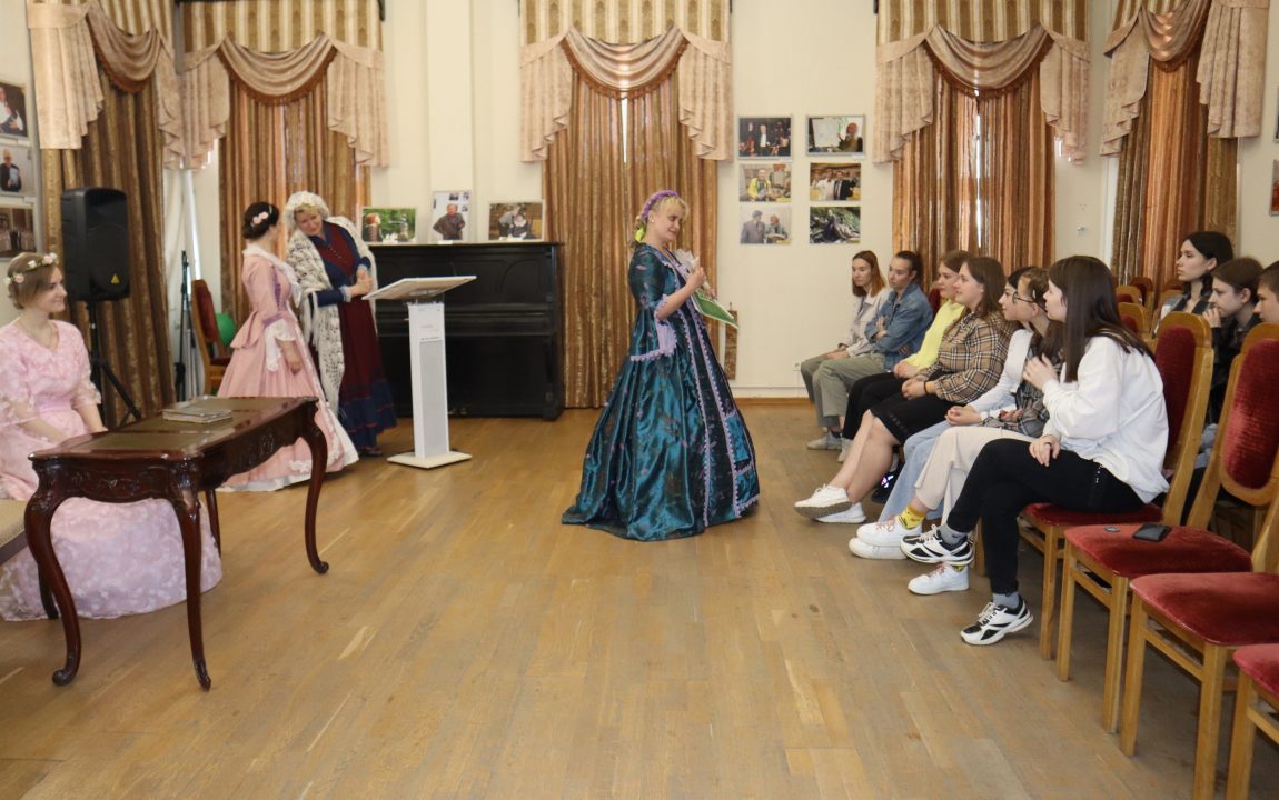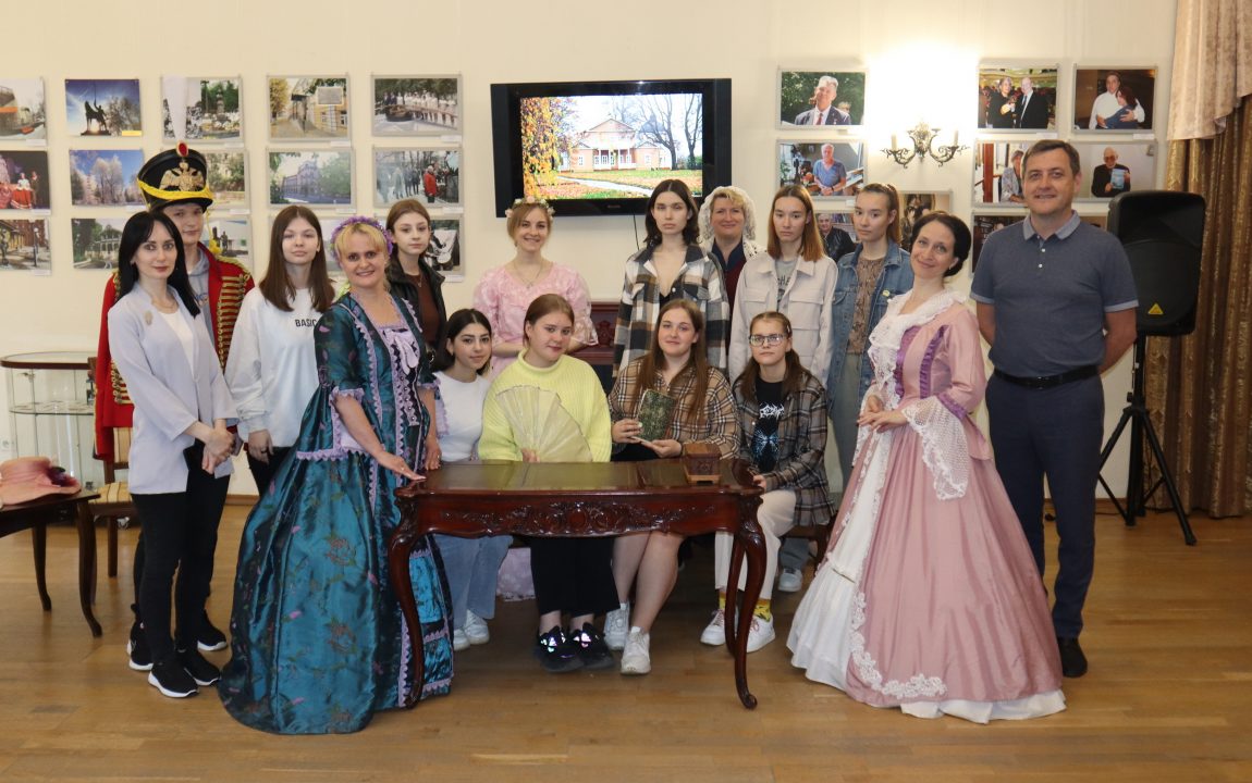 Ребят встретили прекрасные дамы – специалисты отдела по просветительской работе музея, сыгравшие знакомых и родственников великого поэта и прозаика. Они рассказали о различных событиях из жизни М.Ю. Лермонтова, а студенты ответили на интересные вопросы о его творчестве, прочитали стихи. За правильные ответы каждый получил небольшие элементы головоломки, которые в конце встречи собрали в единый красочный пазл.
