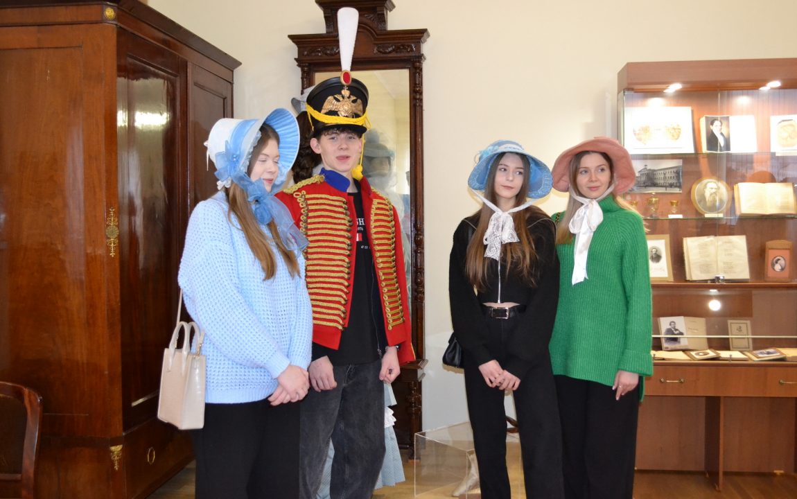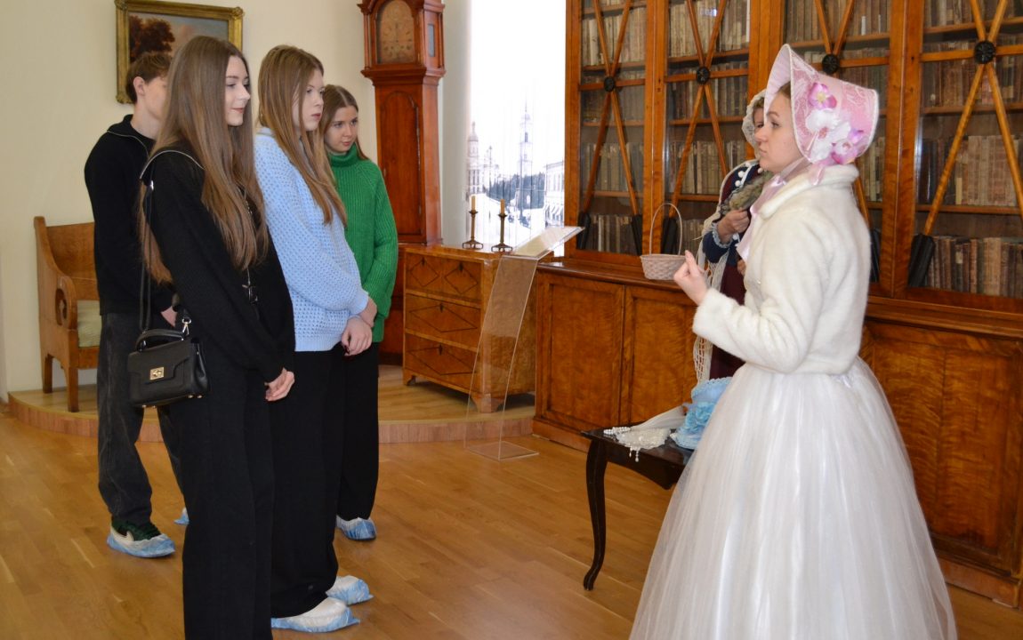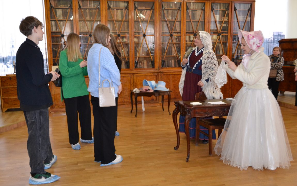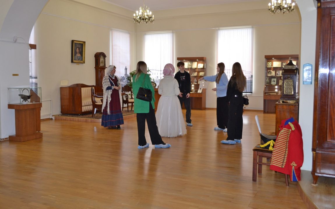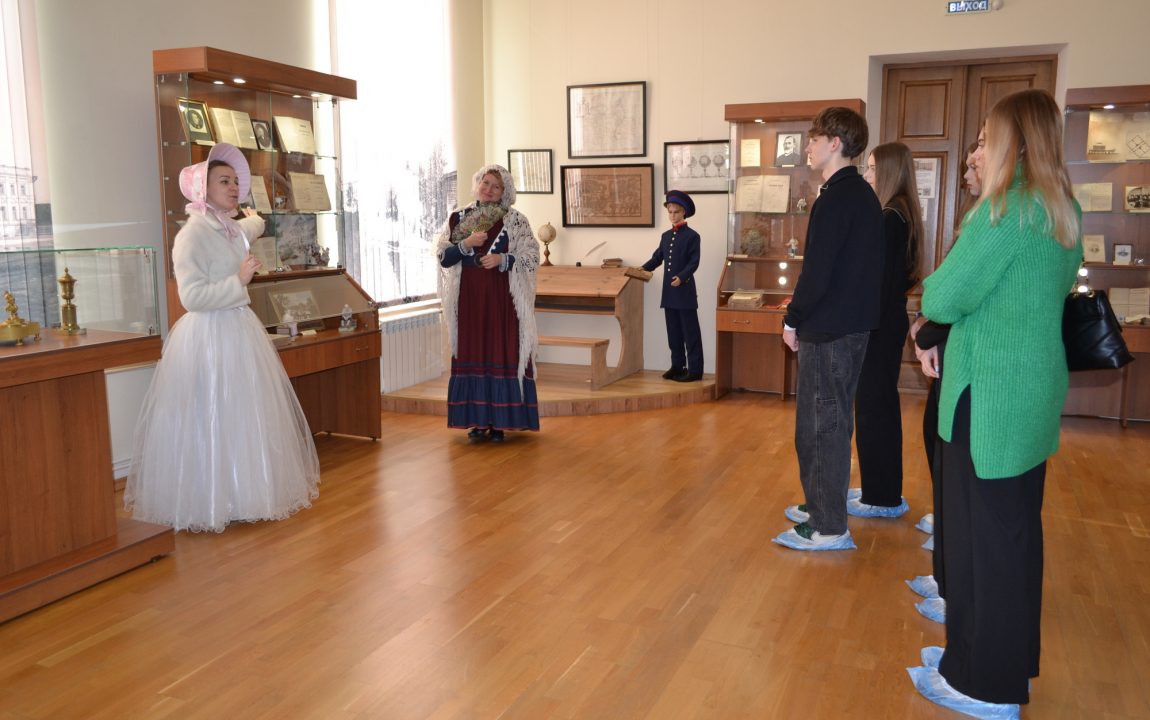 Барышни проводят гостей музея по экспозиции «Пензенская земля – русской литературе» и расскажут о великих писателях и поэтах Пензенского края. Пензенские студенты узнали о И.И. Лажечникове, несколько лет возглавлявшем мужскую гимназию в начале XIX века; о театральном и литературном критике В.Г. Белинском, некогда учившемся в этих стенах. Они ознакомились с главным богатством музея – уникальным собранием прижизненных изданий авторов трех столетий: И.А. Крылова, Г.Р. Державина, Д.В. Давыдова, М.Е. Салтыкова-Щедрина, Н.С. Лескова и др.
