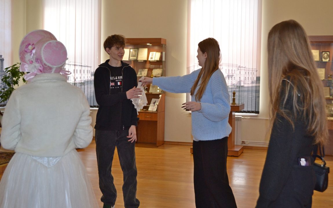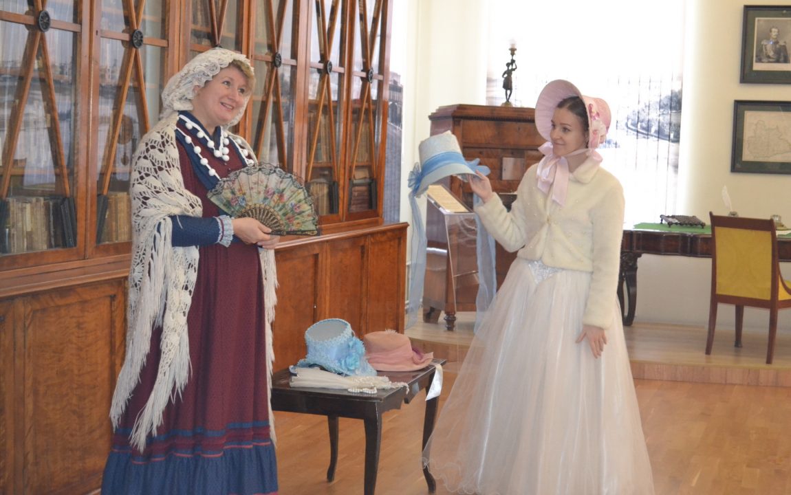 Театрализованная экскурсия «Литературные сюжеты» привлекает внимание студентов формой подачи информации – согласитесь, приятно послушать диалог прекрасных дам, облаченных в наряды XIX века.