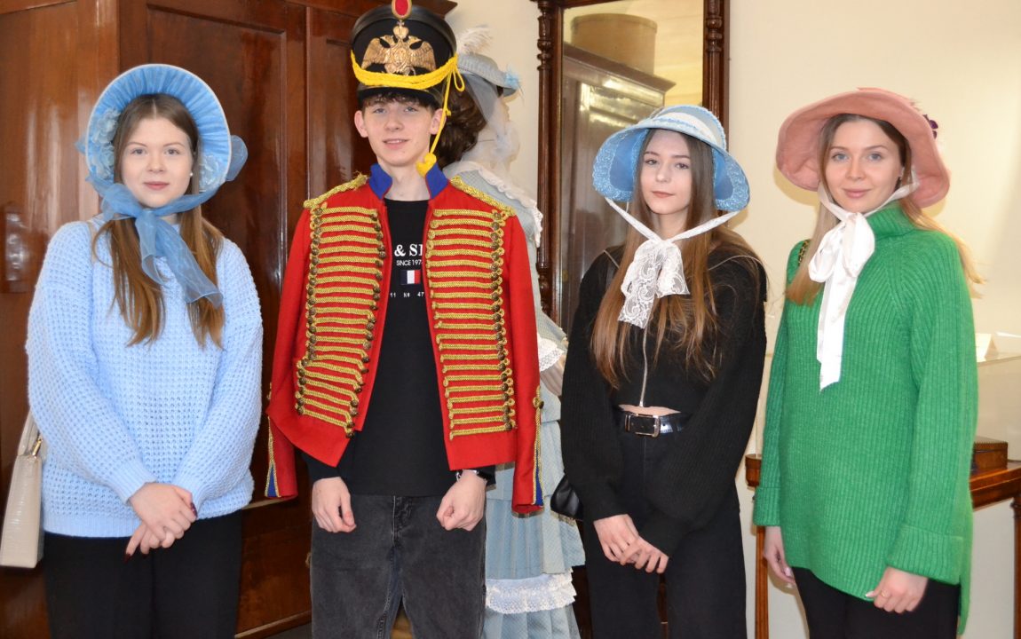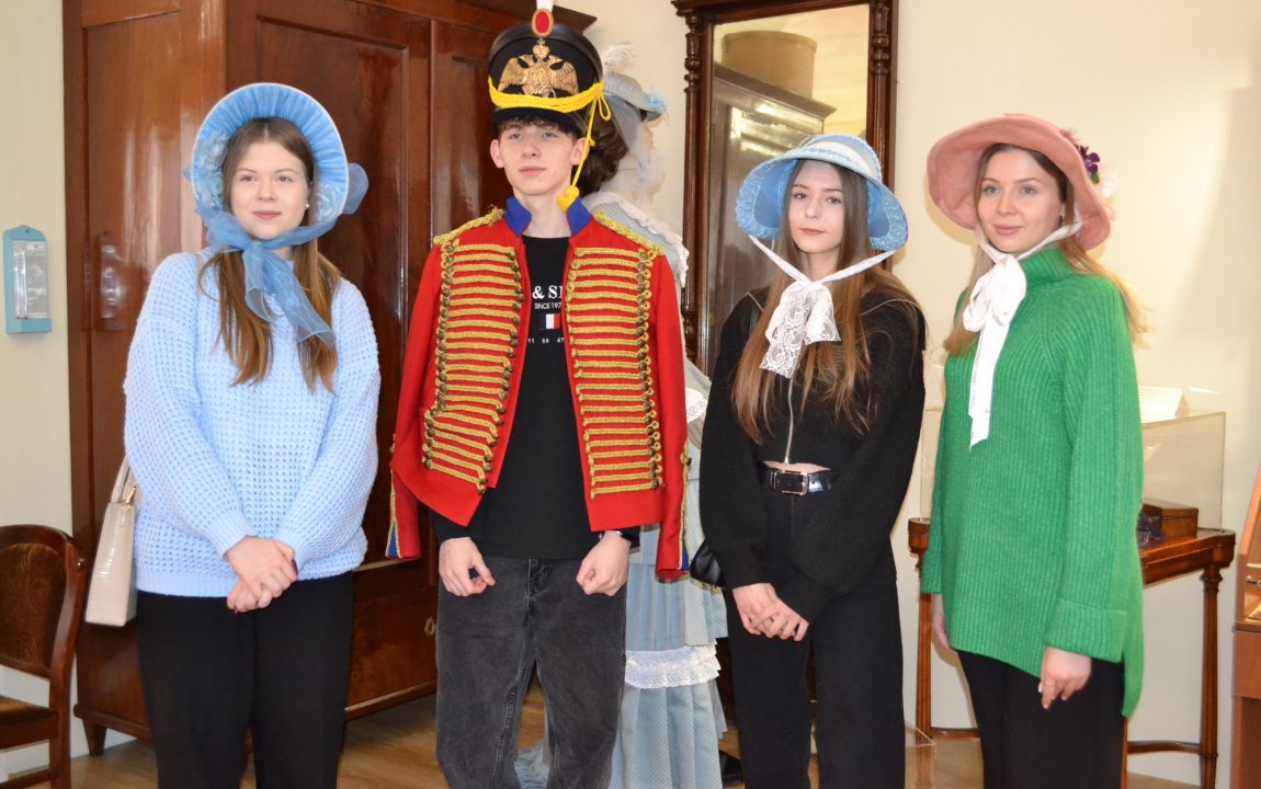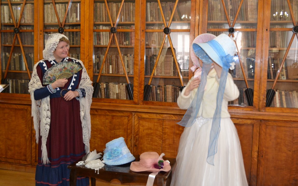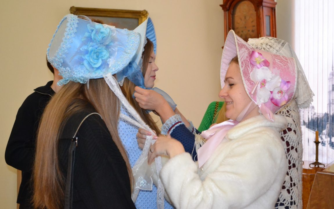 По завершении познавательного мероприятия гости с удовольствием поиграли в модную салонную игру XIX века, а затем с дамы помогли девушкам примерить шляпки, а молодому человеку – кивер и гусарский ментик.