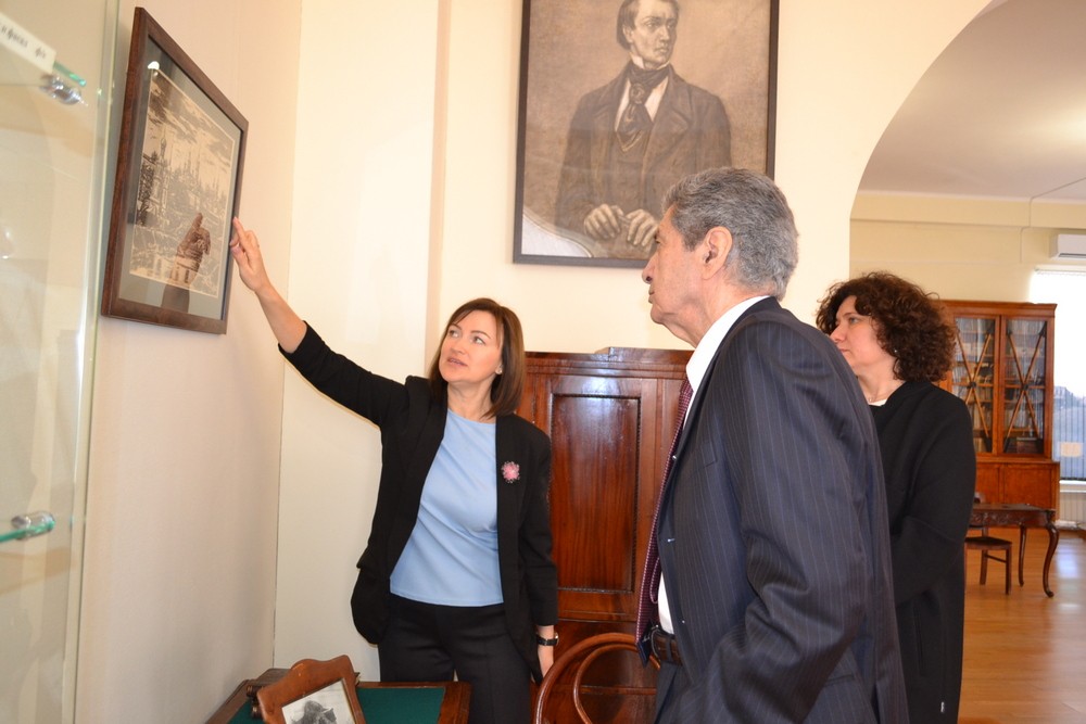 Генеральный директор Объединения Наталья Полева провела экскурсию для гостей. Михаил Георгович останавливал своё внимание на великом критике В.Г. Белинском, поэте и драматурге И.М. Долгоруком, писателе М.Н. Загоскине, поэте В.А. Жуковском и других. Гости делились воспоминаниями, связанными с именами и произведениями великих литераторов.
