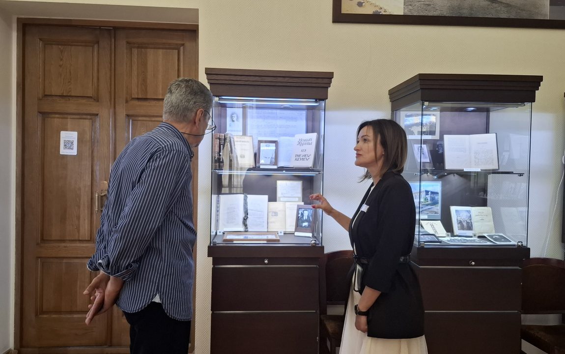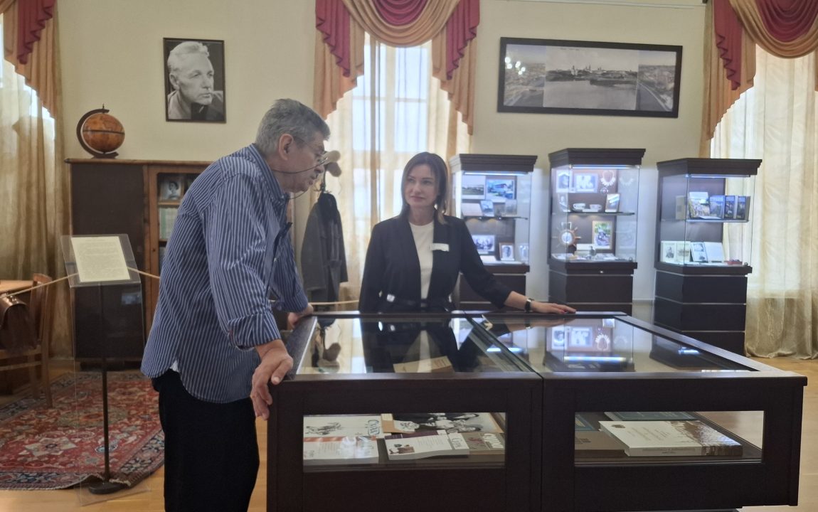 С особым вниманием он осмотрел залы музея и поделился воспоминаниями о своем отце – Георге Васильевиче Мясникове, по инициативе которого в августе 1975 года было создано Литературное объединение, ставшее первым в России объединением музеев, посвященных литературному наследию.