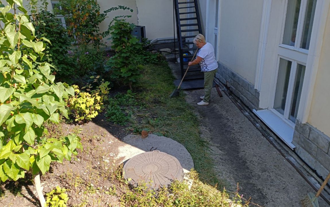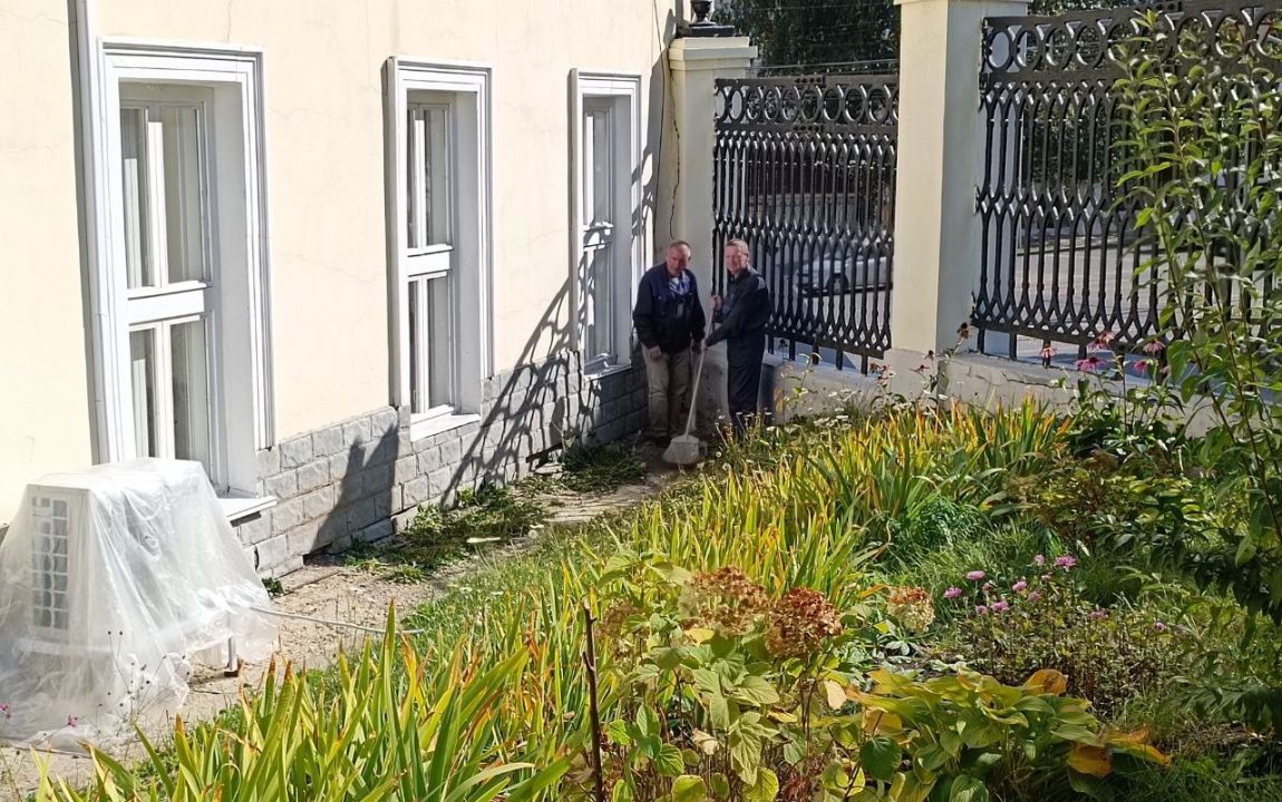 Сотрудники музея очистили от загрязнений внутренний дворик, выполнили санитарную уборку дорожек и облагородили цветочные клумбы. В перспективе — уборка рабочих мест и служебных помещений.
