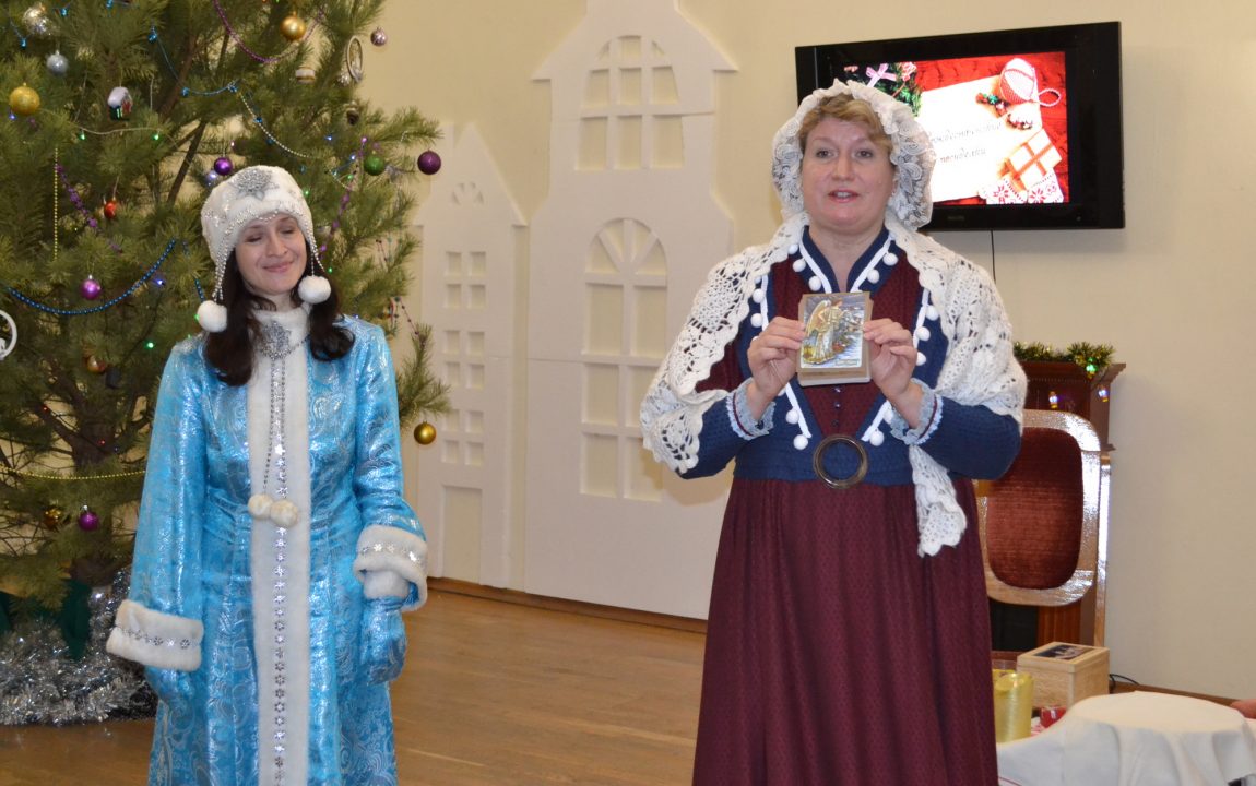 Снегурочка и Госпожа Метелица рассказали посетителям об истории празднования Нового Года, Рождества и Крещения Господня. Дети узнали откуда пошла традиция украшения новогодней ёлки, а также чем было принято её наряжать в прошлом веке. Ребята активно участвовали в викторине, отвечали на каверзные вопросы ведущих и разгадывали загадки. Конечно, не обошлось без традиционных гаданий, в которых приняли участие не только дети, но и взрослые.
