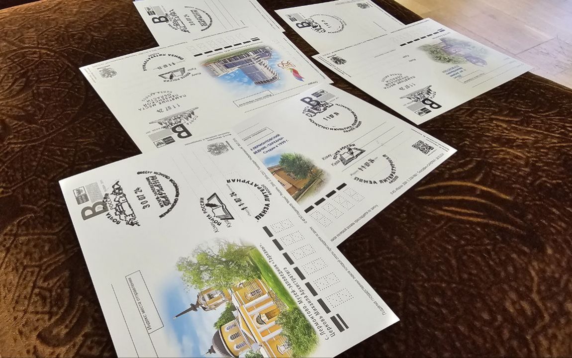 Новый штемпель и праздничные карточки предоставил заместитель председателя Пензенского областного отделения Союза филателистов России Борис Москалёв совместно с заместителем директора Управления федеральной почтовой связи Татьяной Софийской. Пензенский филателист отметил, что на карточке изображен дом бабушки поэта Елизаветы Алексеевны Арсеньевой, но его парковая часть, а не парадная, как это обычно принято.