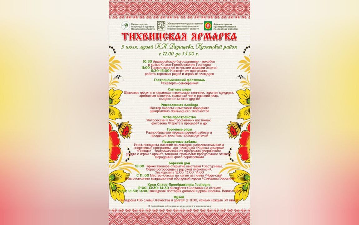 Ежегодный фольклорный праздник «Тихвинская ярмарка» состоится на территории усадьбы Радищевых 5 июля.