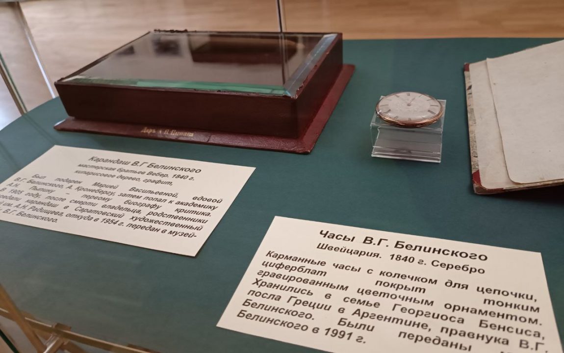 На выставке «Мы все – прямые его воспитанники» представлены живописные виды родного для критика Чембара, графика о жизни В.Г. Белинского из альбома советского и российского художника-графика Бориса Лебедева, копии рукописей В.Г. Белинского, его часы, трость и карандаш, собрание сочинений, бронзовый бюст и многое другое.