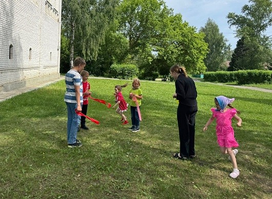 В программе дети участвовали в веселых конкурсах, разгадывали загадки-перевертыши, играли в подвижные игры: «Рыбалка», «Ловишка», «Хали-хало» и «Пчелки». Атмосфера была наполнена радостью и смехом. В завершение праздника каждому ребенку вручили воздушный шарик — символ детства и беззаботности.