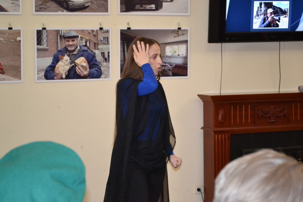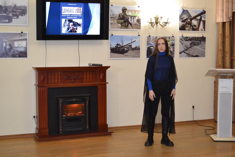«Монолог дончанки», прозвучавший в исполнении артистки камерного литературного театра «Голос поэта» Елены Юсуповой, в считанные минуты создал терпкую и яркую атмосферу сопричастности к событиям, отраженных в работах военкора Владимира Аносова.