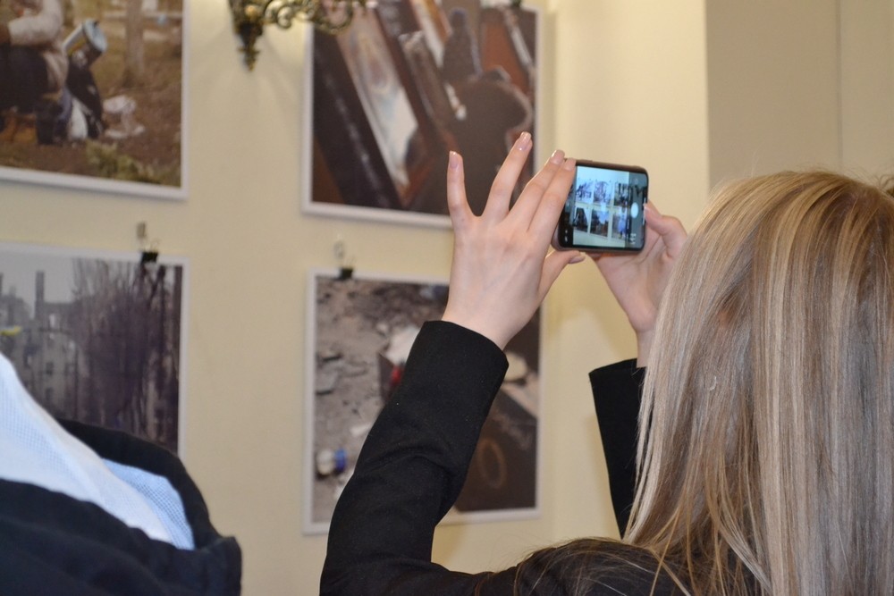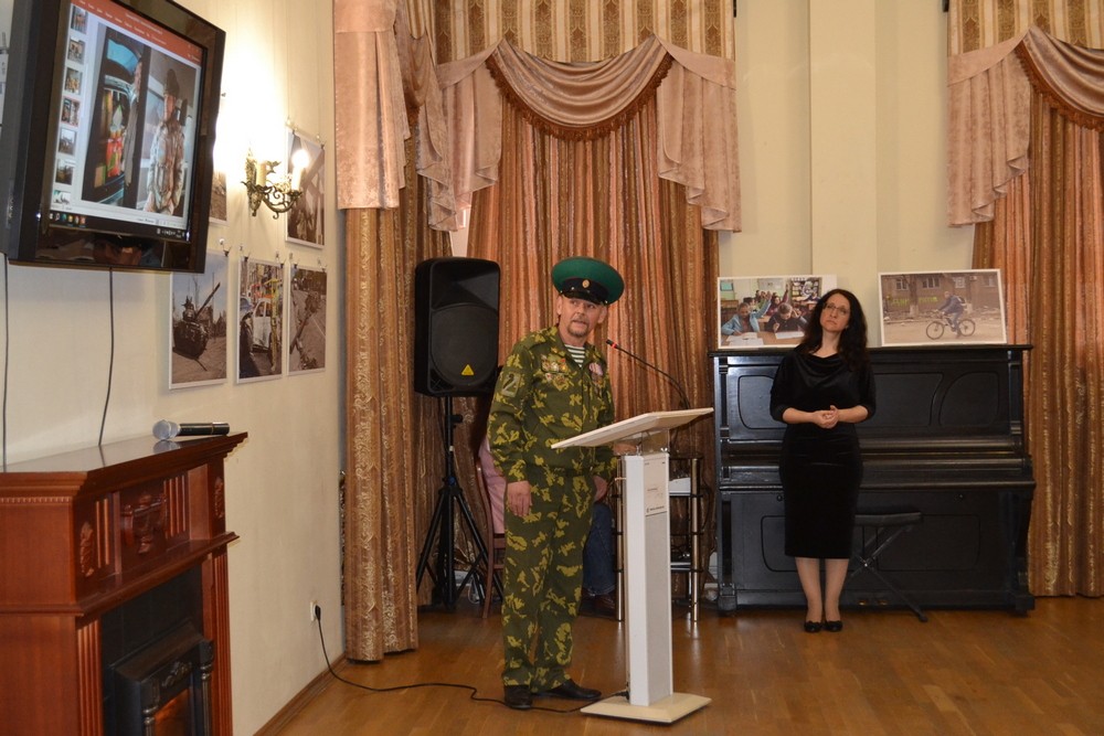 Гости фотовыставки узнали, что автор снимков — бывший кадровый военный, майор запаса Владимир Аносов, который уже 16 лет работает в Кубанском филиале «Российской газеты». Он с детства мечтал стать военным и фотографом. Зрителей также тронуло то, что Фронтовому корреспонденту не раз приходилось бывать под обстрелами. Эта выставка является документом – свидетельством очевидца.