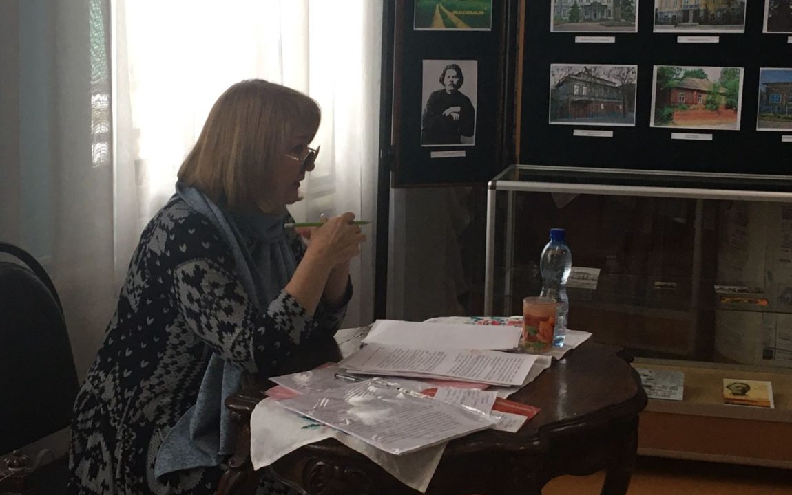 Научный сотрудник Пензенского литературного музея, купринист, руководитель Школы экскурсоводов, заслуженный работник культуры Пензенской области Татьяна Кайманова проводит учебное занятие для молодых коллег из музея А.И. Куприна, входящего в Объединение государственных литературно-мемориальных музеев Пензенской области.
