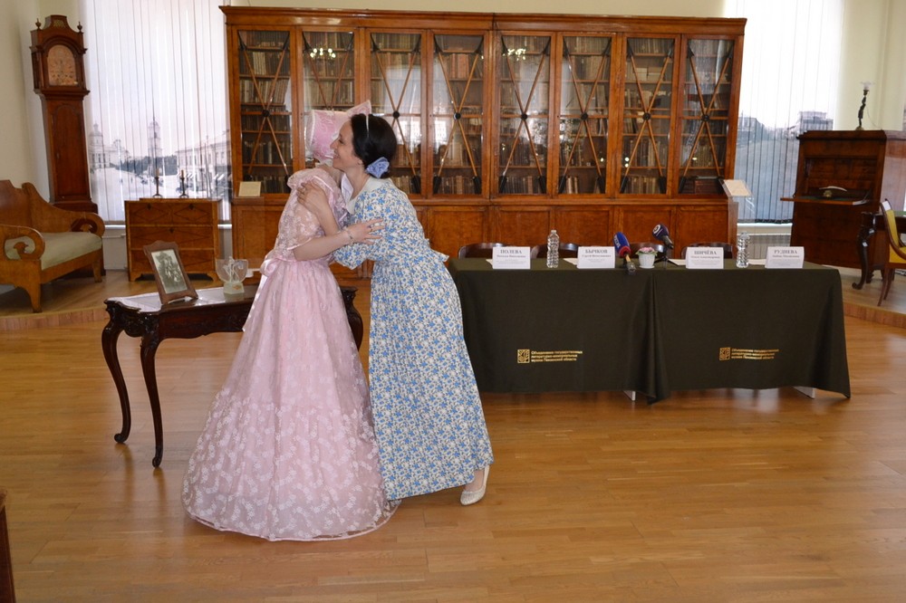 Предваряя официальную часть встречи, участникам представили театрализованную миниатюру-приглашение от Сашеньки Белынской и её подруги Александры, приехавшей в гости из Петербурга.
