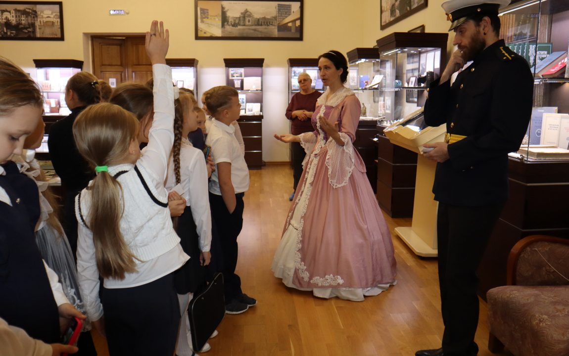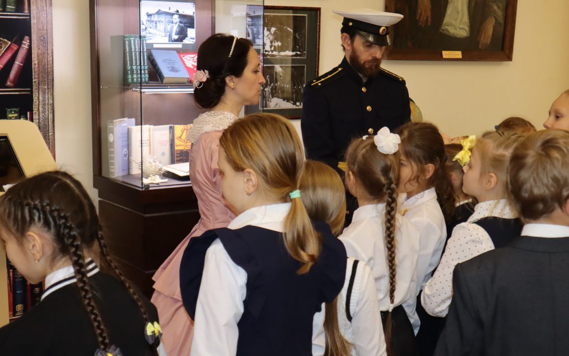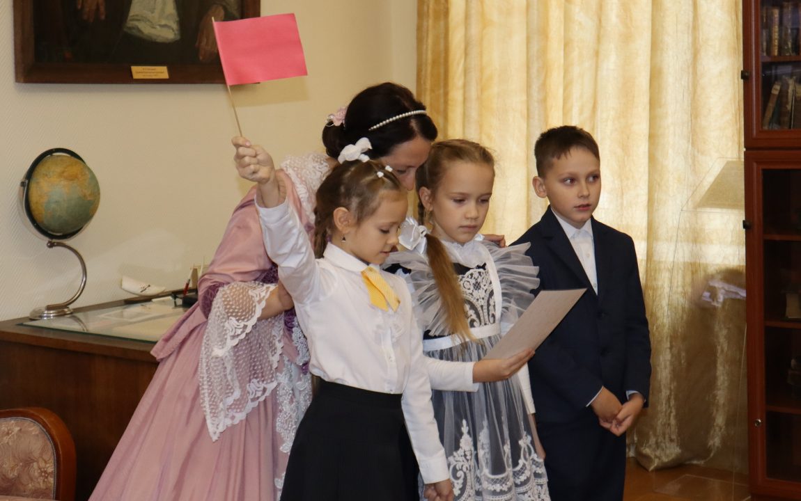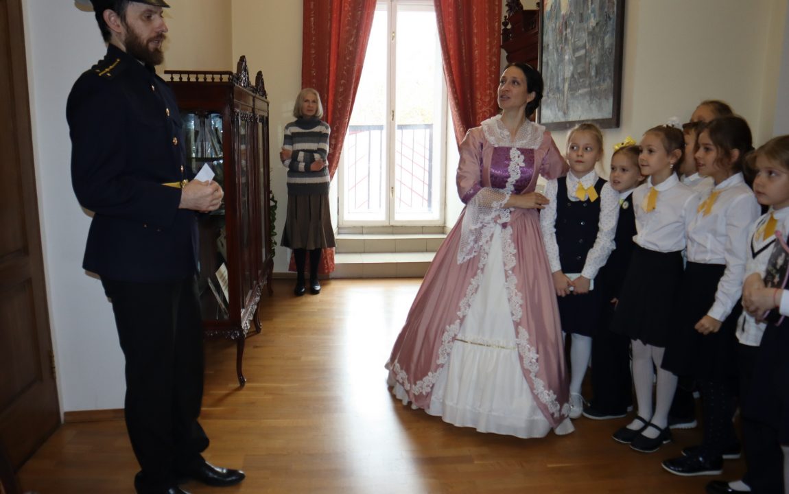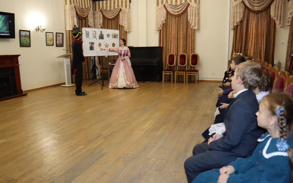 В Литературном музее школьников встретили очаровательная дама и статный гвардеец, которые рассказали о писателях-земляках, защищавших Отечество. Дети узнали историю Александра Ивановича Куприна, Михаила Юрьевича Лермонтова и Константина Сергеевича Бадигина.