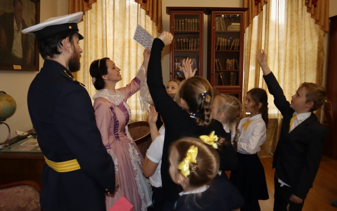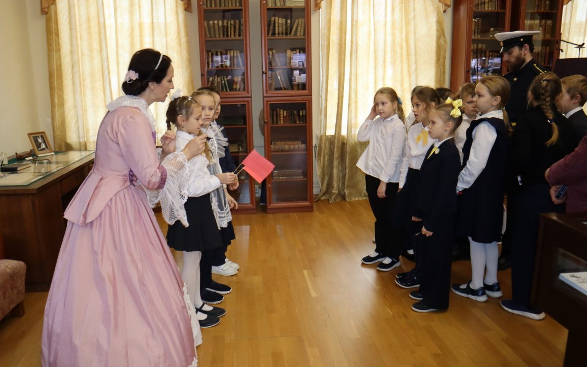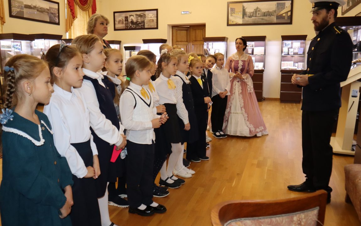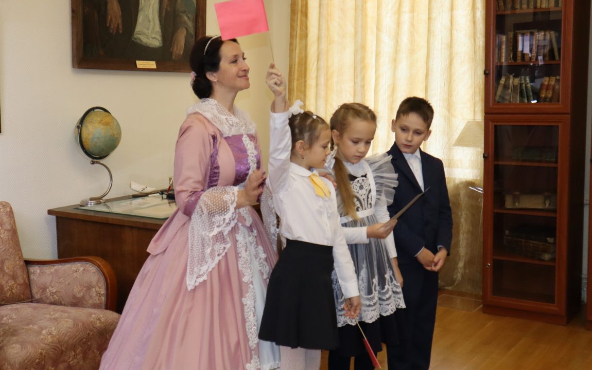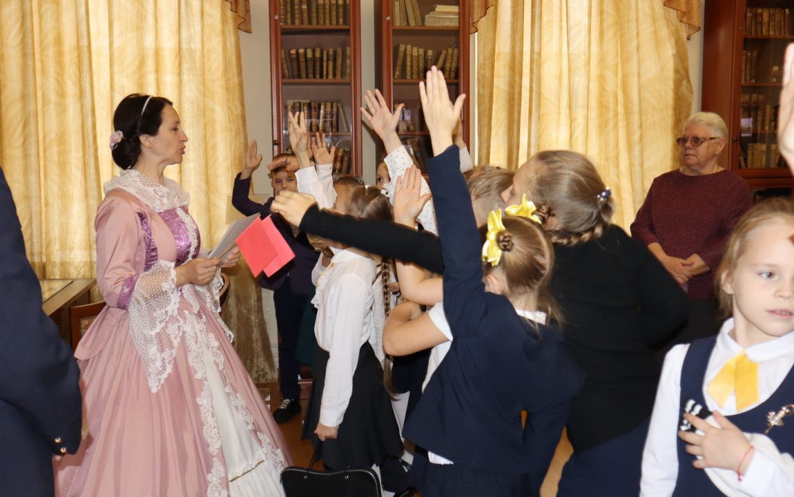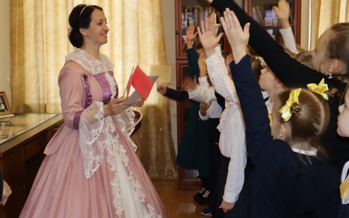 В Литературном музее школьников встретили очаровательная дама и статный гвардеец, которые рассказали о писателях-земляках, защищавших Отечество. Дети узнали историю Александра Ивановича Куприна, Михаила Юрьевича Лермонтова и Константина Сергеевича Бадигина.