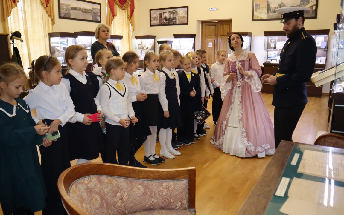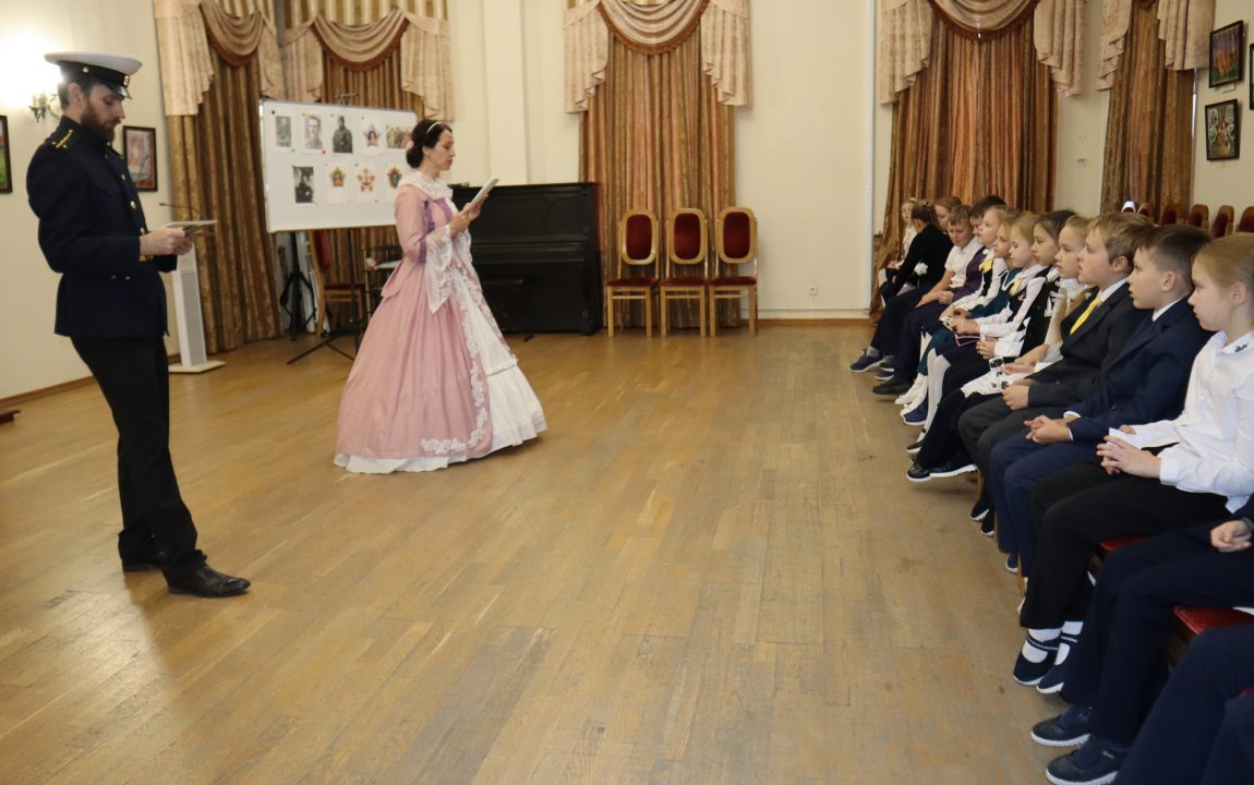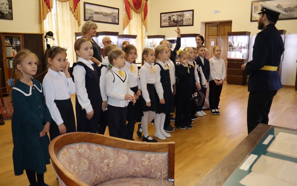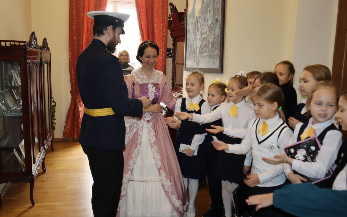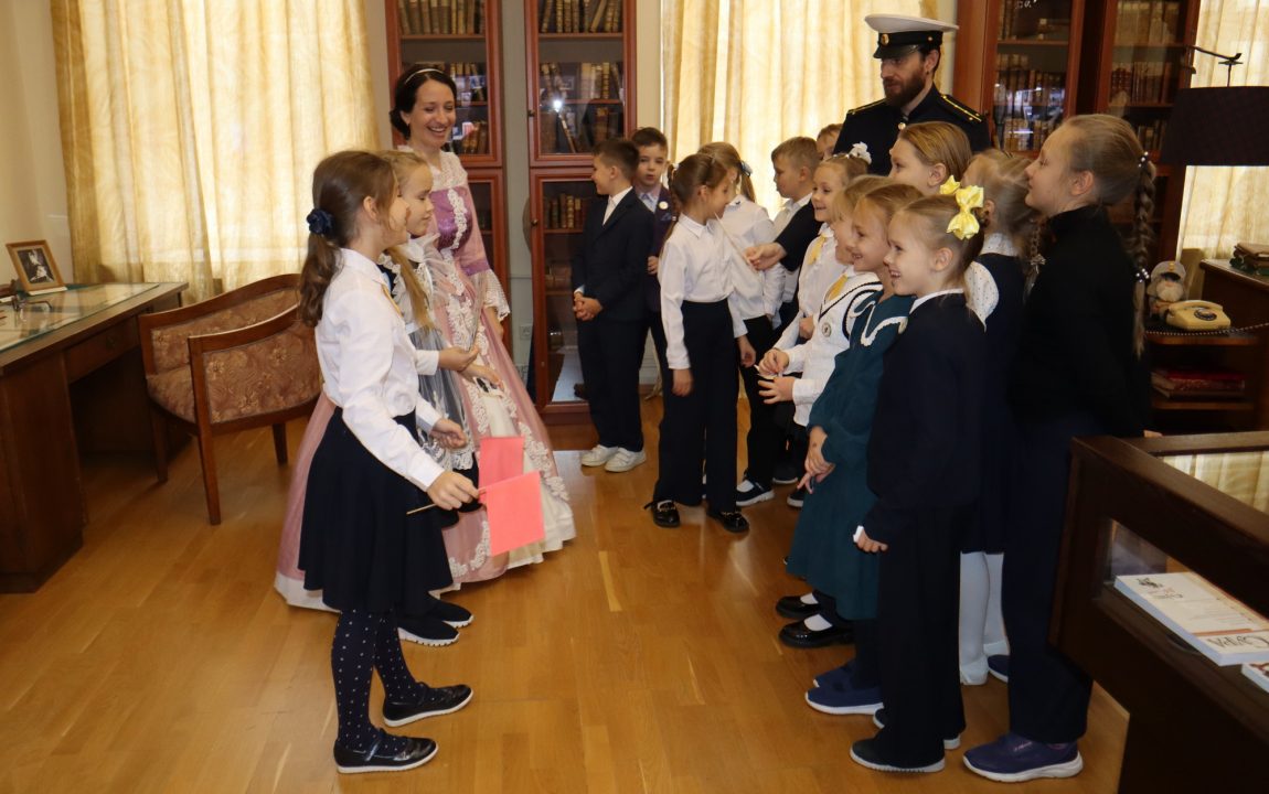В Литературном музее школьников встретили очаровательная дама и статный гвардеец, которые рассказали о писателях-земляках, защищавших Отечество. Дети узнали историю Александра Ивановича Куприна, Михаила Юрьевича Лермонтова и Константина Сергеевича Бадигина.