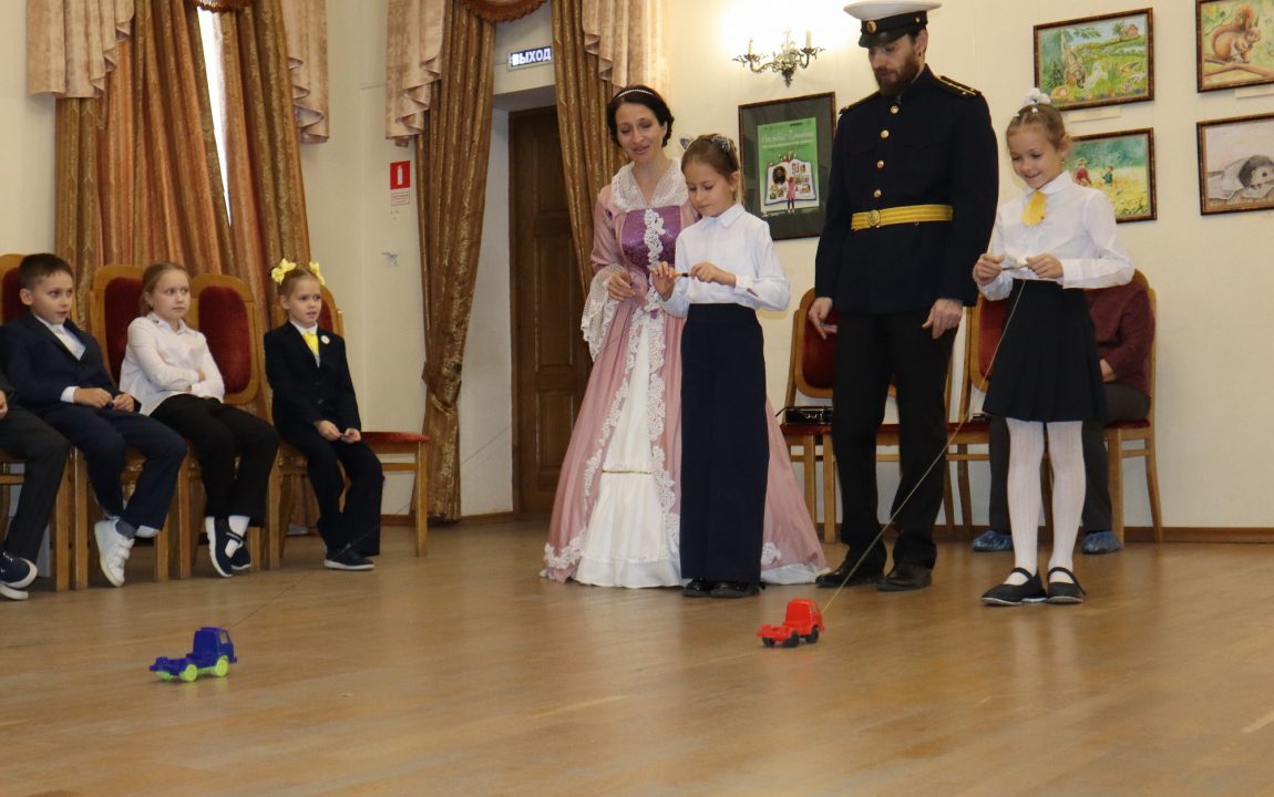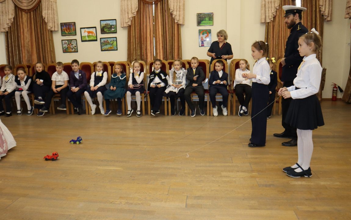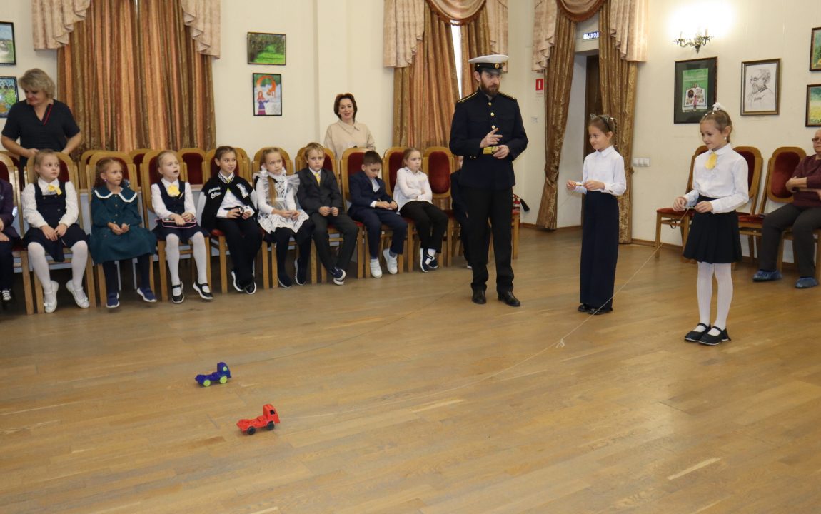 В ходе театрализованного занятия «Русская доблесть на все времена» школьники ознакомились с кабинетом ледового капитана, попробовали показать название судна «Седов» при помощи семафорной азбуки, а также посоревновались в «автомобильных гонках на льду».
