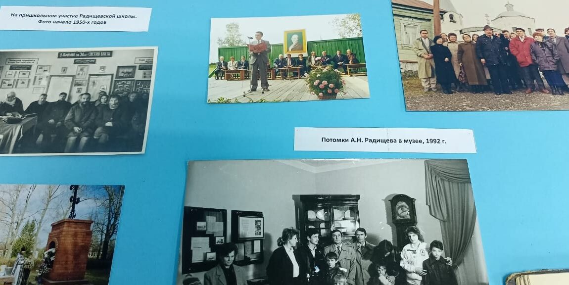 Посетителей выставки заинтересовали фотоснимки с потомками-земляками. На одном из них изображена правнучка писателя Нина Алексеевна Радищева, которая неоднократно приезжала в музей А.Н. Радищева и присутствовала на праздновании 200-летнего юбилея со дня рождения Александра Радищева (1949 г.). На других — Виталий Аркадьевич и Борис Аркадьевич Радищевы из Оренбурга, принимающие участие в торжественном заседании, посвященном 190-летию со дня смерти писателя (1992 г.), на 50-летнем юбилее музея (1995 г.) и праздновании 255-летия со дня рождения А.Н. Радищева (1999 г.).