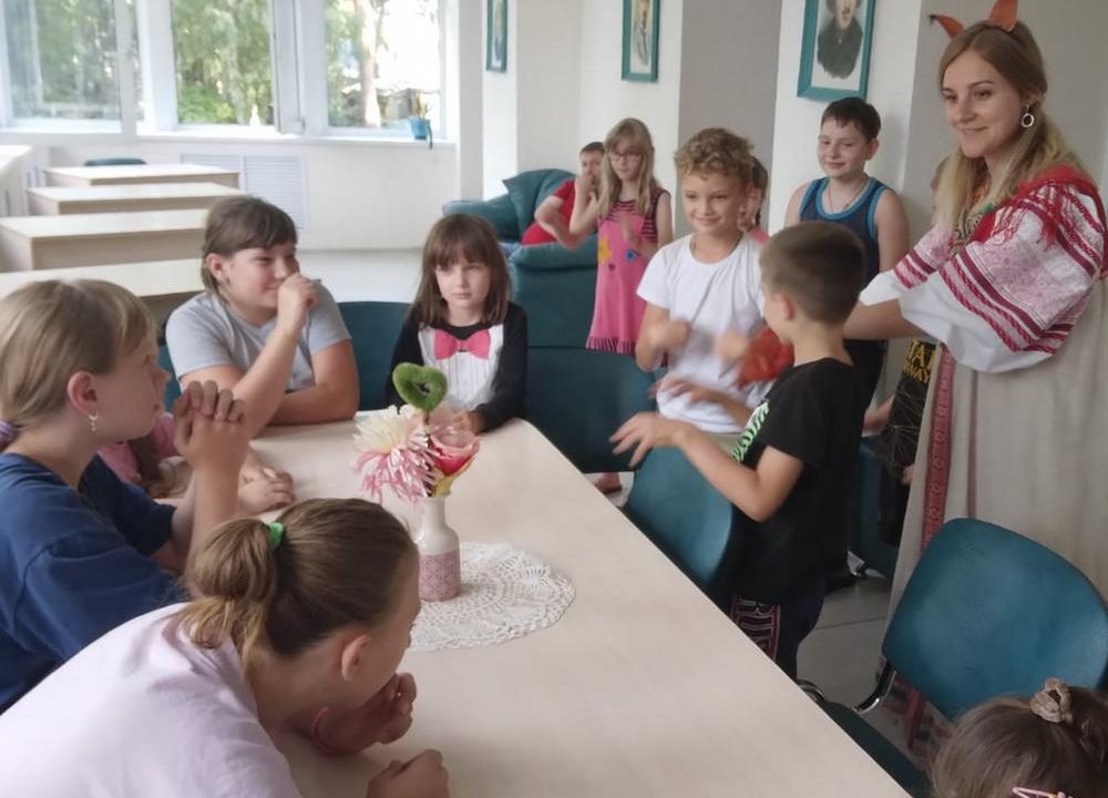 Театрализованное занятие по сказкам великого русского поэта и писателя А.С. Пушкина провели сотрудники отдела по просветительской работе Пензенского литературного музея для детей, расположившихся в пункте временного размещения для вынужденных переселенцев в санатории имени В.В. Володарского.