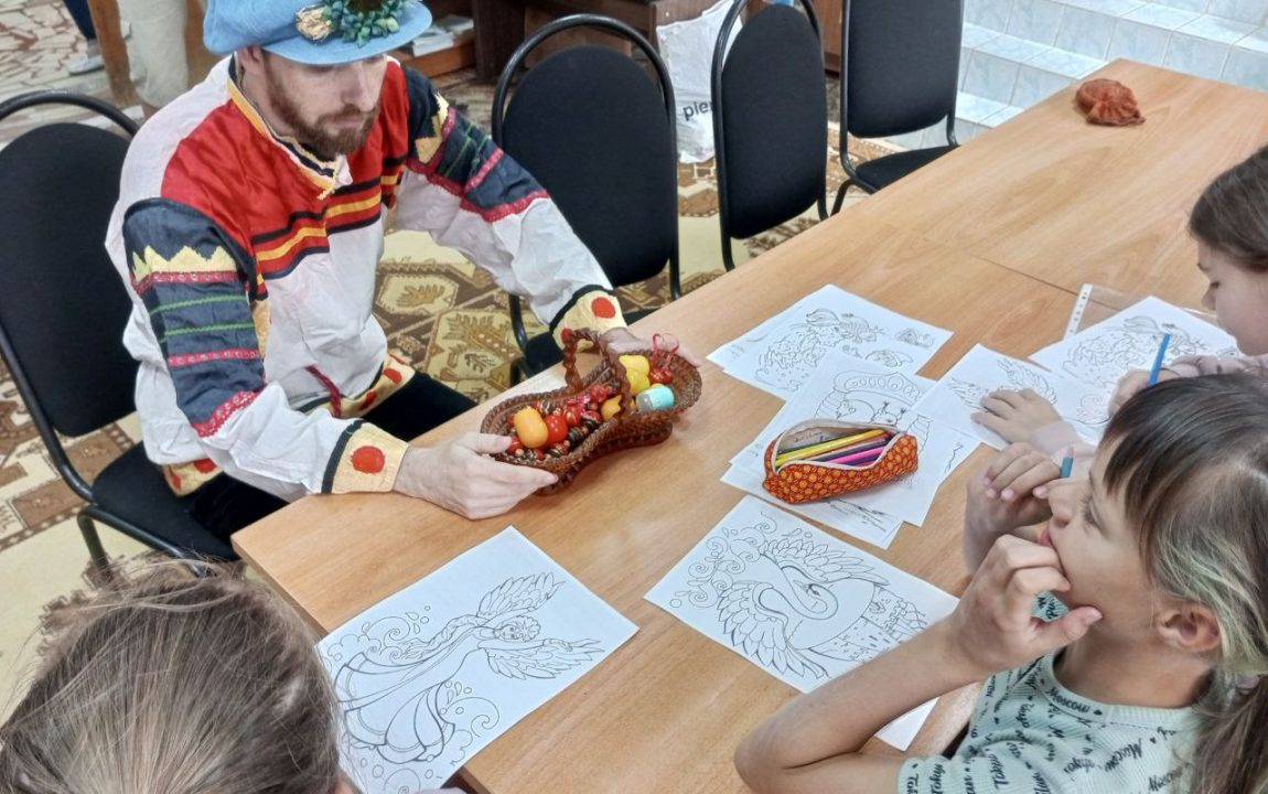 Сотрудники отдела по культурно-просветительской работе Пензенского литературного музея сегодня побывали с театрализованным занятием у ребят в «Березовой роще», где расположен пункт временного размещения для вынужденных переселенцев.
