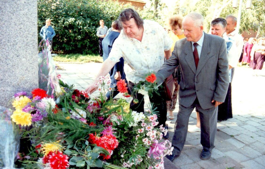 На фото: В.А.Поляков и О.М.Савин возлагают цветы к бюсту Куприна в Наровчате, бюст А.И.Куприна. Автор В.Курдов.