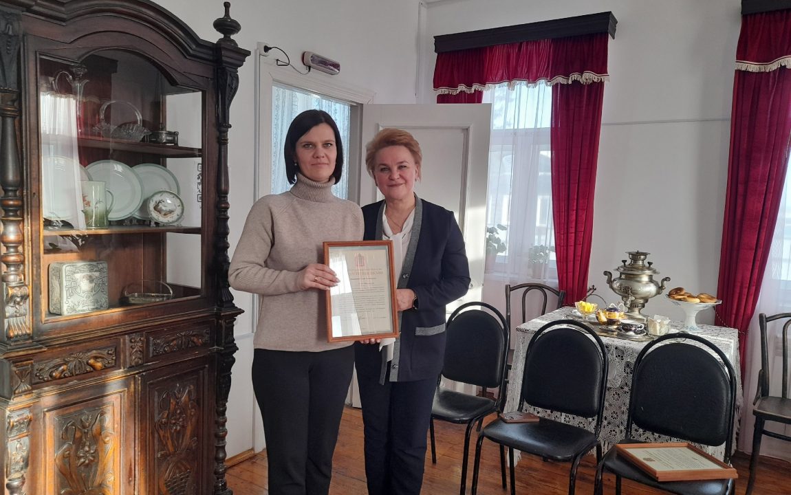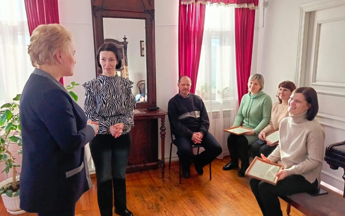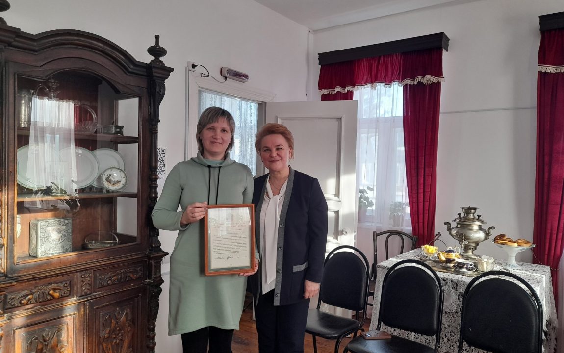 В гостиной музея состоялось торжественное вручение благодарственных писем Губернатора Пензенской области музейным сотрудникам за добросовестный труд и достигнутые успехи в сфере профессиональной деятельности. Из рук главы Наровчатского района письма приняли Экскурсовод музея А.И.Куприна Елена Михайловна Миронова, музейный смотритель Татьяна Александровна Алпатова, садовник музея Татьяна Александровна Загородова.