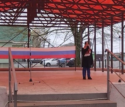 Также звучали патриотические песни в исполнении участников художественной самодеятельности Центра культурного развития района.