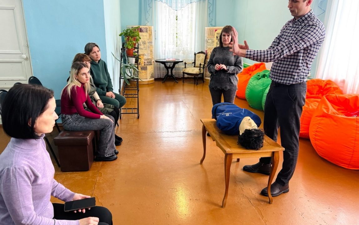 Специалисты Администрации Наровчатского района подробно объяснили сотрудникам музея, как правильно проводить сердечно-легочную реанимацию, как остановить кровотечение при различных травмах, как оказать помощь при переломах, ушибах и вывихах.