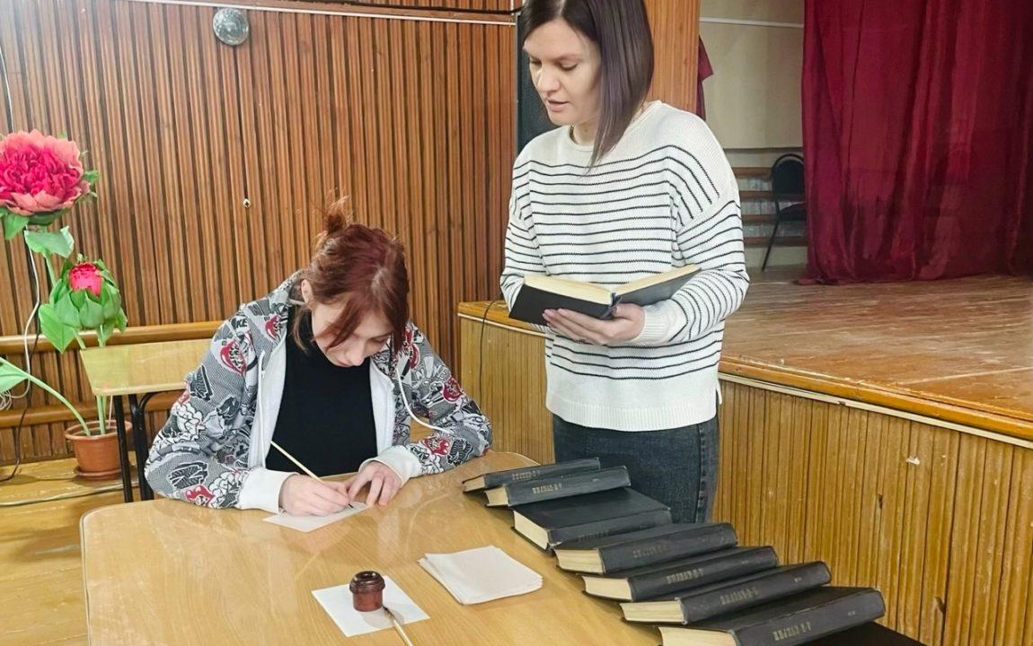Ребята ознакомились с различными произведениями Александра Ивановича, предсказали будущее с помощью его собрания сочинений и записали свое предсказание пером и чернилами.