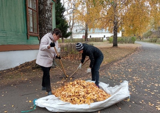 В ходе субботника проведена уборка прилегающей к музею территории, убрана опавшая листва и сухие ветки, выметены дорожки, подготовлены к зимнему периоду клумбы.