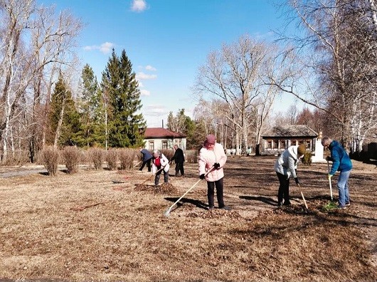 С самого утра работники музея собрали и утилизировали сухую траву, листья, подготовили клумбы для посадки новых цветов. Провели уборку пешеходных дорожек, создавая комфортные условия для гостей музея.
