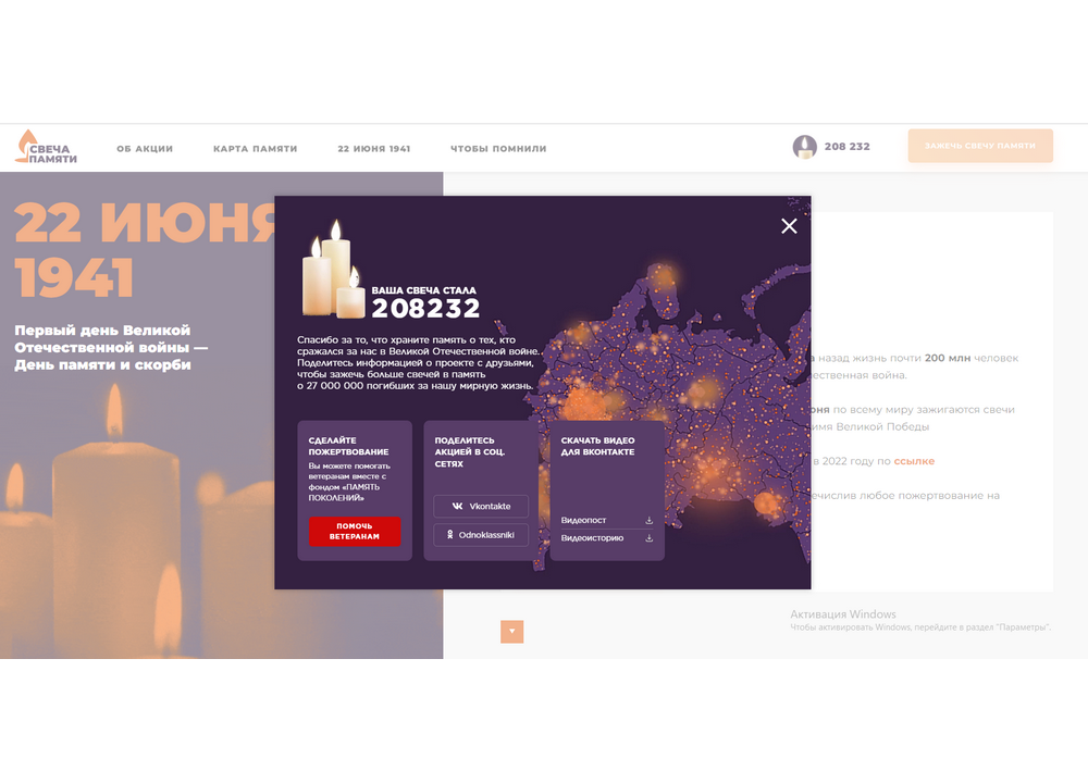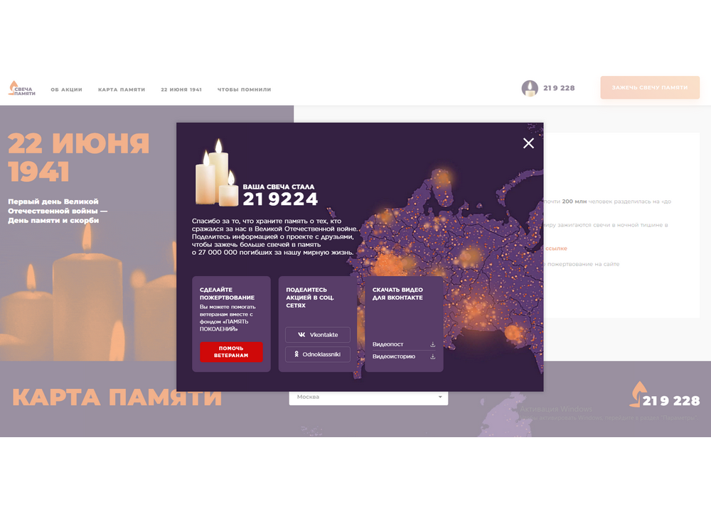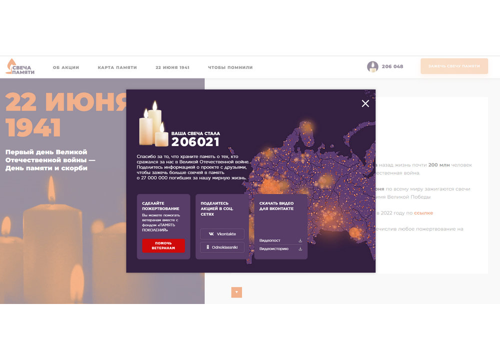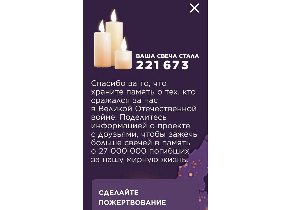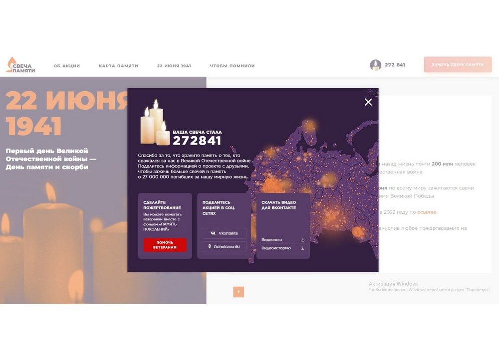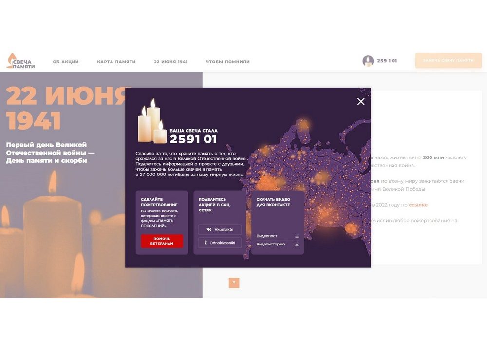 Каждый год 22 июня, в День памяти и скорби, проходит общенациональная акция «Свеча памяти».