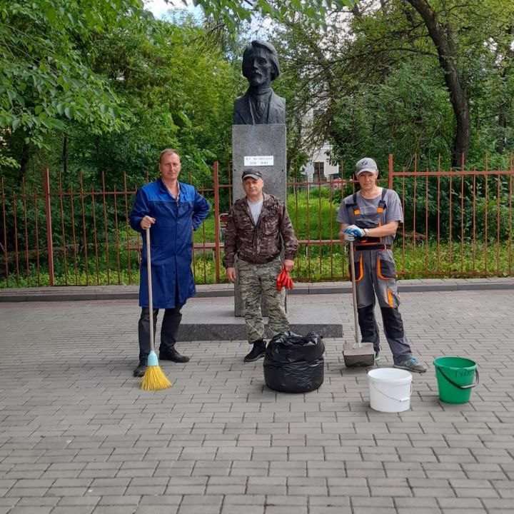 Сотрудники Пензенского литературного музея привели в порядок территорию у бюста В.Г. Белинского.