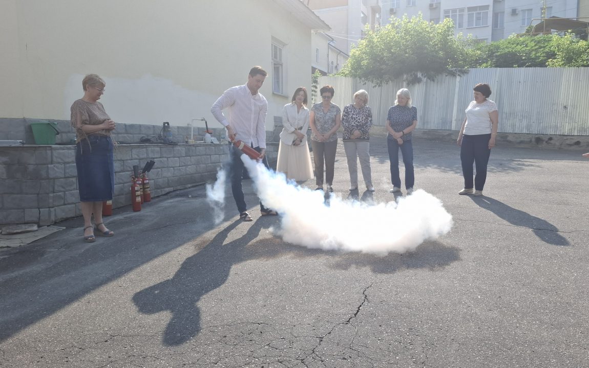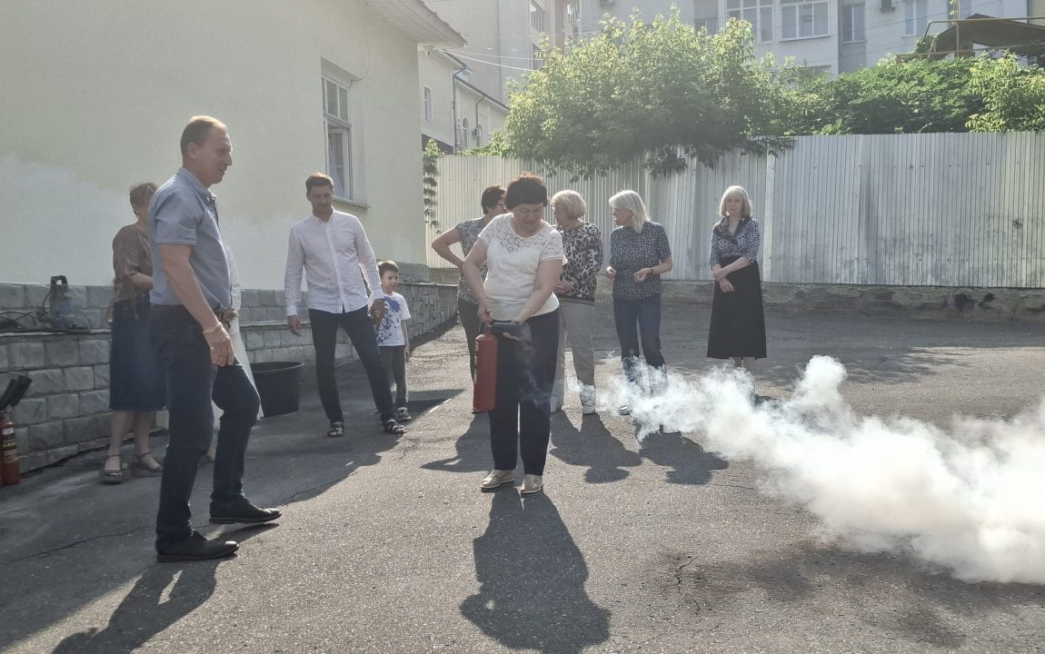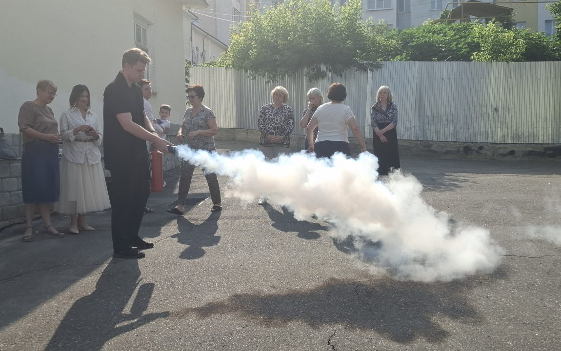 Но теория – это только половина дела. Самым впечатляющим и полезным стал практический блок: каждый сотрудник музея лично попробовал свои силы в работе с огнетушителем. Под чутким руководством специалиста МЧС мы учились правильно срывать чеку, наводить раструб на условное пламя и эффективно тушить. Это оказалось не так просто, как кажется, но очень важно.