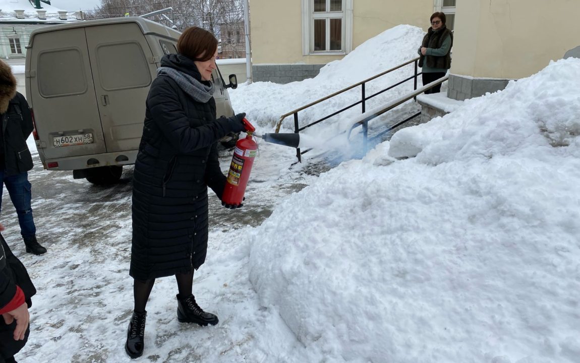 Практическое занятие по ознакомлению с работой первичного средства пожаротушения состоялось в Пензенском литературном музее 14 марта 2022 года. Начальник караула 1ПСЧ им. Н.Н. Баичкина ПСО ФПС ГПС Главного управления МЧС России по Пензенской области Дмитрий Пережогин рассказал музейным работникам о видах огнетушителей, их назначении и последовательности действий при использовании, после чего был организован тренировочный процесс. Сотрудники использовали оборудование музея — углекислотный огнетушитель.