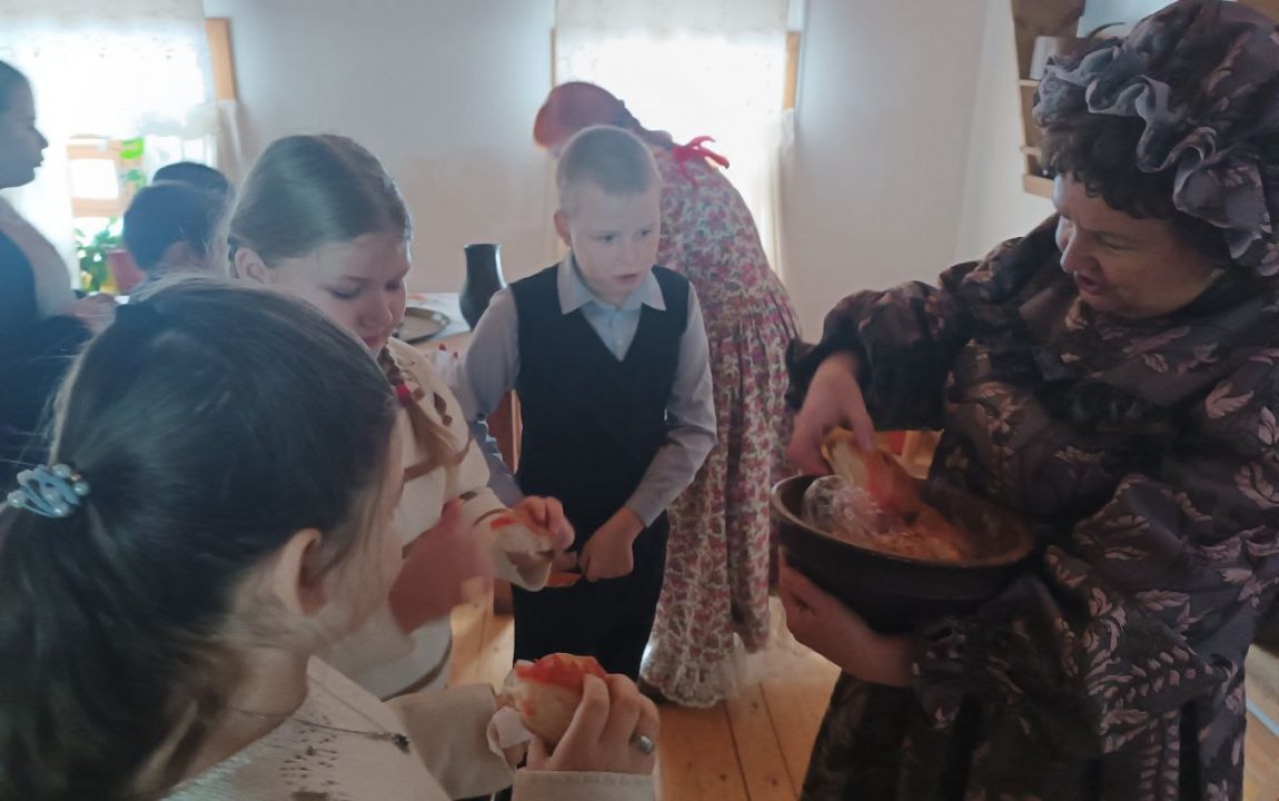Дети впервые побывали в мемориальном доме, поэтому с особым удовольствием воспринимали погружение в мир XIX века. Хозяйка дома, Мария Ивановна Белынская, и её старшая дочь Александра встречали гостей с новогодними забавами, песнями, хороводами.