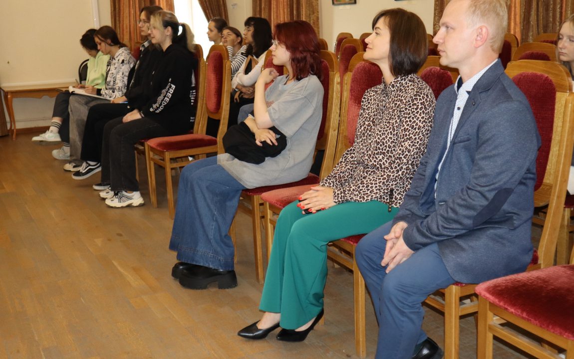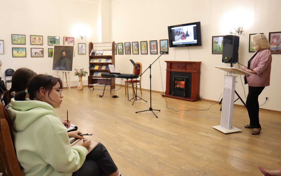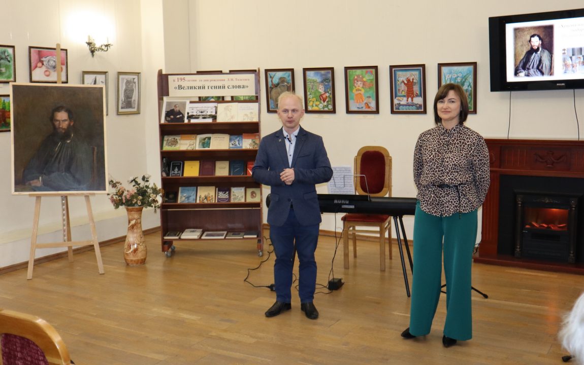 Ведущая вечера, сотрудник культурно-просветительского отдела, рассказала студентам художественного училища о многочисленных портретах Л.Н. Толстого и иллюстрациях к его произведениям, о визите в Пензенскую губернию, в частности, к родственнице в город Никольск.