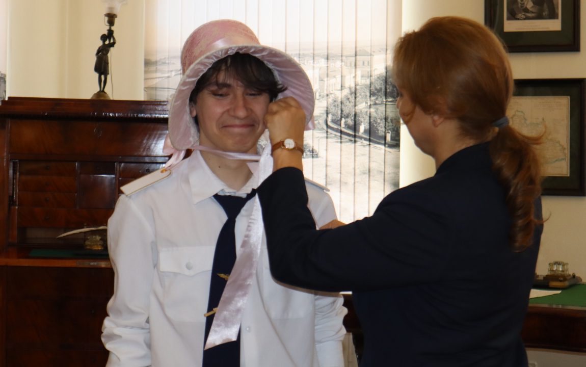 Ребята с большим энтузиазмом примеряли кивер и ментик, но также им пришлись по вкусу и дамские шляпки с веером.